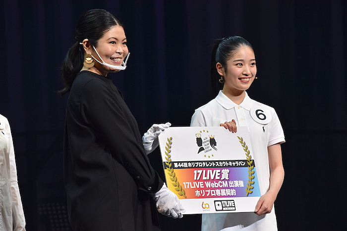 決選審査の結果、まず17Live賞に選ばれたのは、京都府出身の佐竹桃華さん。2003年1月19日生まれの高校3年生。趣味・特技はクラシックバレエと大食い。選ばれた瞬間は驚いた様子だった佐竹さんは、受賞の感想を問われ、「正直信じられないし、びっくりしているんですけど、この賞にふさわしいスターになれるよう、精進して参りたいと思います。ありがとうございます」とコメントした。