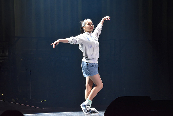 最初に行われたのはダンス審査。映画『The Greatest Showman』の「The Greatest Show」という曲の一部を、三井が振付をしたもの。2人1組で審査が行われ、ソロパートも含め、およそ1分半くらいだろうか。基本的な体の使い方はもちろん、表現の大きさや表現力の幅、さらに「遊び心」も求められるような高難度の振付だった。