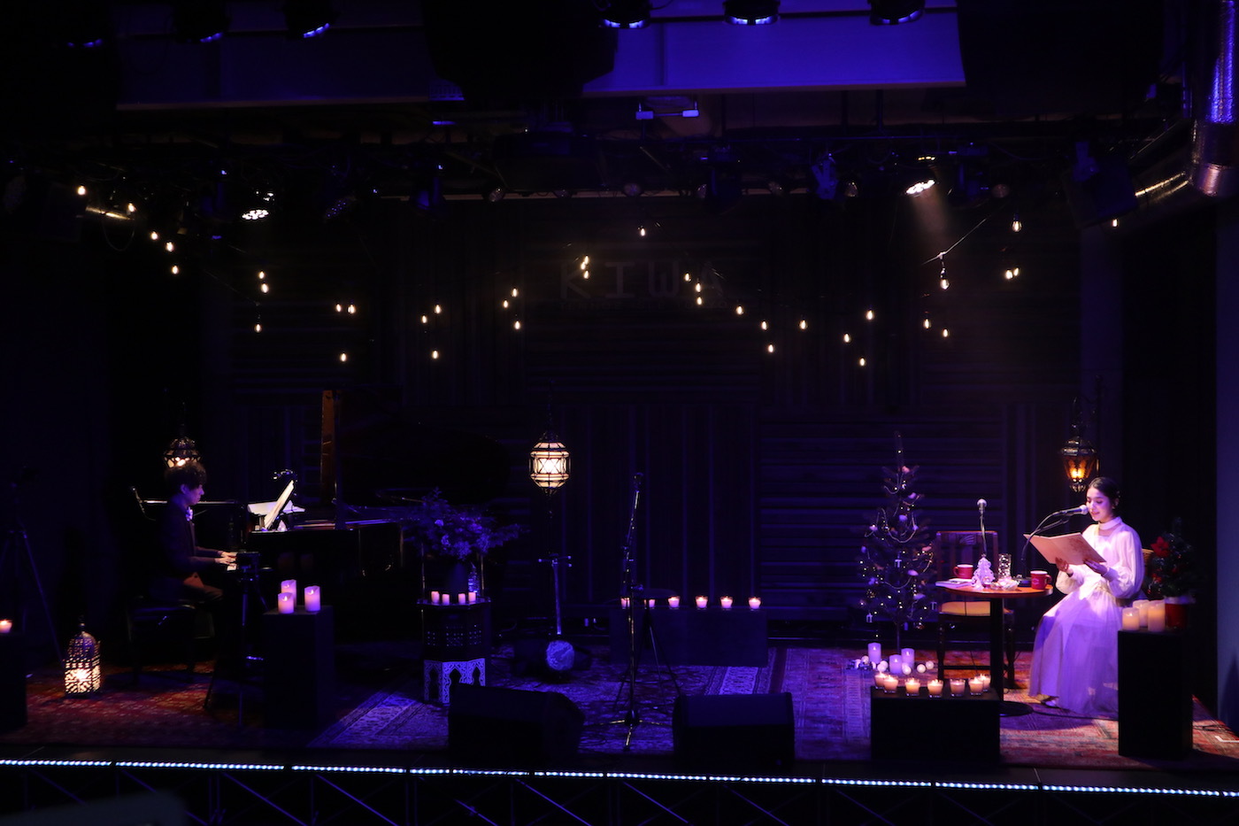 城が朗読した「赤いマグカップ」は、松本の著作『hope』に収められている、冬のロンドンを舞台にした物語。松本のピアノ演奏も相まって、心温まる情景が目に浮かぶようだ。