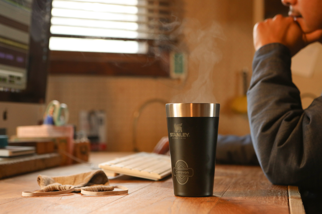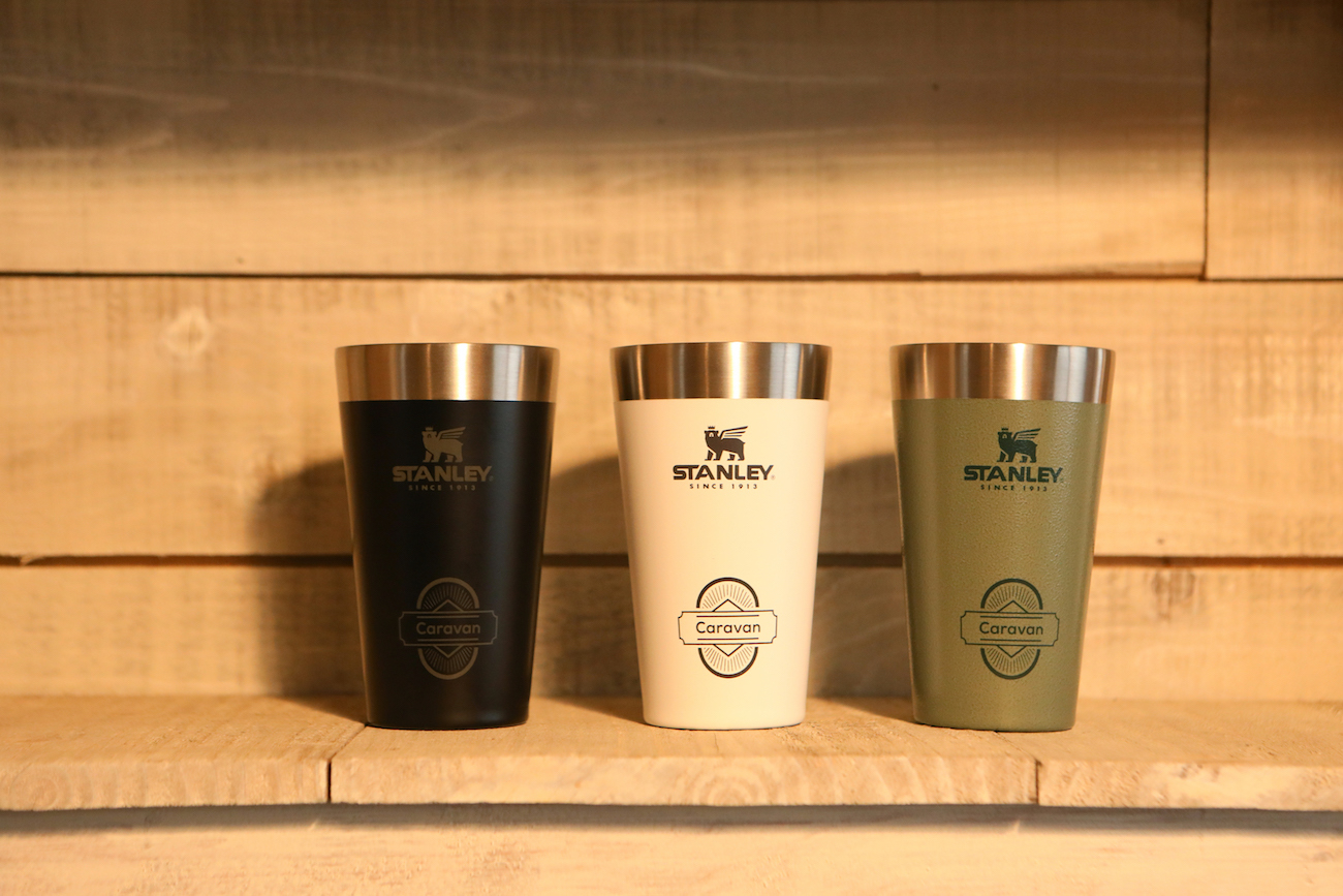 今回のアイテムはスタッキング真空パイント0.47Lで、アウトドアに加え、氷がとけにくく冷たさをキープできるため毎日の晩酌にも最適。また、ホットドリンクは熱くならず持つことができるので一年中使用可能。そして、スタッキング(積み重ね)出来るため収納にも便利なものとなっており、商品にはCaravan自身がデザインしたオリジナルロゴもプリントされている。