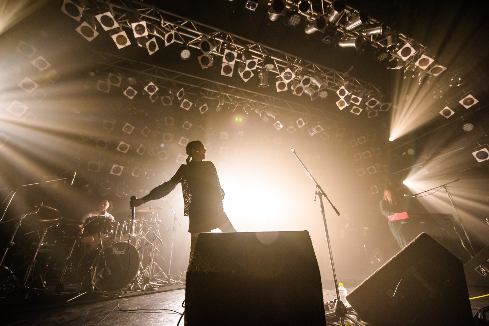 サンプリング音源を使用したドラムと不協和音を奏でる鍵盤の単音が不穏な空気を醸し出した「高鳴り」、シンセベースの音と広がるコーラスがゆっくりと響き、静かで澄んでいるがどこか切ない夜を感じさせる「冴えない夜に」などアルバム曲を披露し、サウンドの豊かさに会場はうっとりと聞き惚れていた。