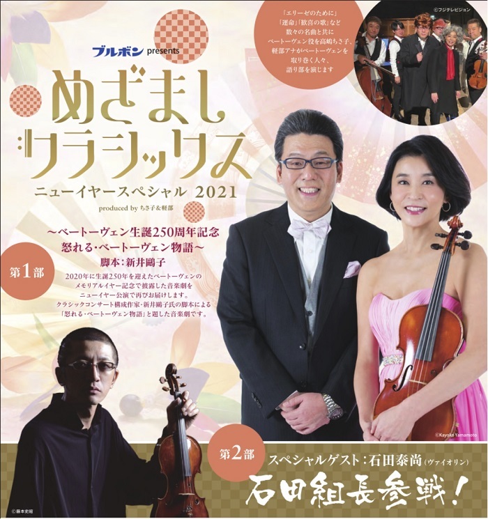 2021年1月26日(火)、 27日(水)ミューザ川崎シンフォニーホールにて開催されるブルボンPresents 『めざましクラシックス ニューイヤースペシャル2021 produced by ちさ子&軽部』。