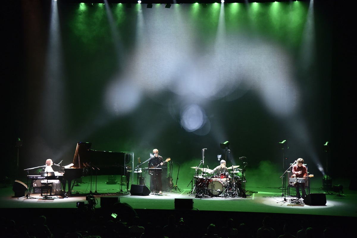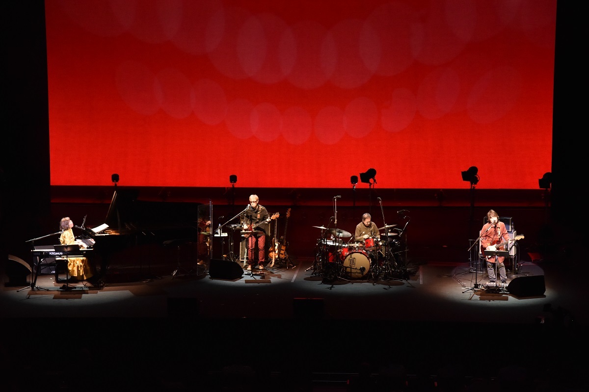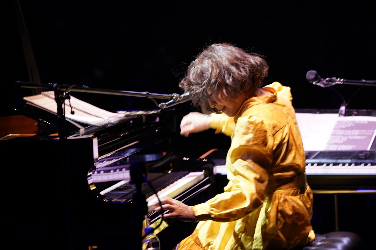 定刻、万感の拍手が沸き起こり、まず3人のメンバー、佐橋佳幸、林立夫、そして小原礼が登場。続いて鮮やかな黄色の衣装をまとった矢野顕子がステージに現れる。大袈裟な身振りで矢野がメンバーへの更なる拍手を促した後、それぞれの位置につき、演奏が始まった。