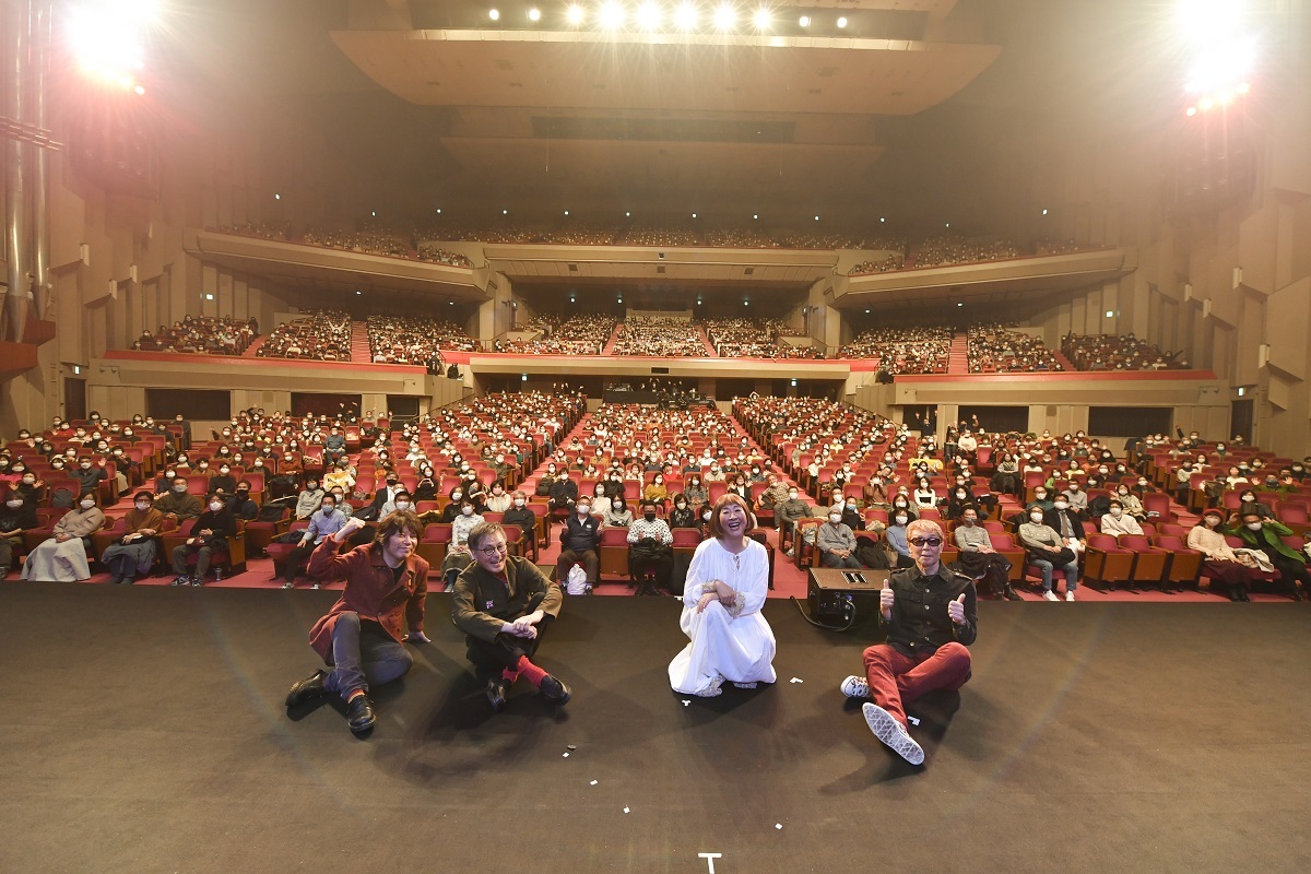 コンサートを開くということ、あるいはコンサートに出かけるということから不本意ながら遠ざけられていた人たちが、その間の苦労を無言のうちにねぎらい合い、再会を喜ぶ時間が持たれた後で、そうしたちょっとウェットな感情を振り払うように、今度はカエルの歌。確かに、カエルに《どうにかなるさ》と言われたら、笑い合うしかない。そして、つぶれた目玉焼きを笑い飛ばすくらいの気持ちになった頃には、もうコロナ禍を逃れて、会場はすっかり矢野的世界になっていた。