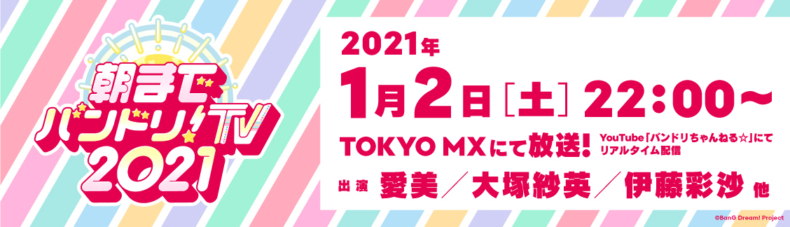 2021年1月2日(土)22:00から『朝までバンドリ!TV 2021』の放送が決定、地上波とYouTubeで同時放送を実施する。