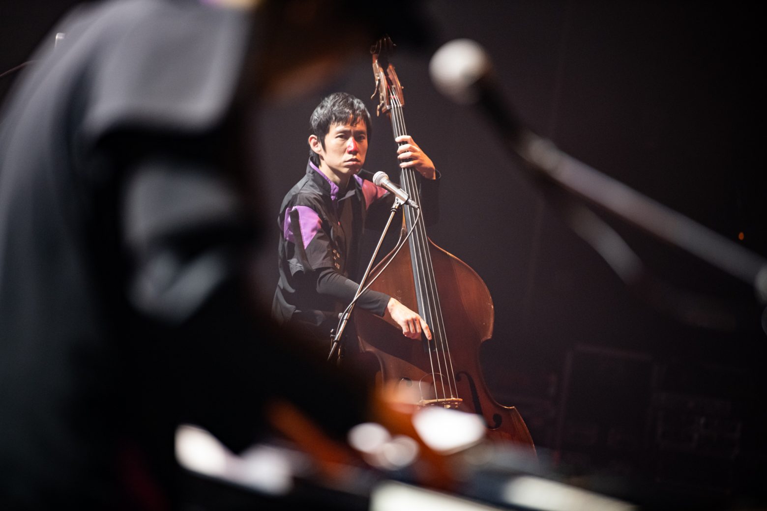MCが終わるとクリスマス時期もあって「光のヒンメリ、輝く街」を披露。そして18年にPS4 Lineup Music Videoにも起用された「Playin’ Swingin’!!! H ZETTRIO!!!」そしてH ZETT NIREの激しいベースプレイがイントロから聴ける「NIRE The Bassman」ととつづき、静けさのなかピアノの美しい旋律に耳を傾ける「距離」を1曲挟んだかと思うと、その後すかさずH ZETT KOUのドラムソロで、まるで2本以上の手があるかのようなアメイジングなプレイが始まり前半戦の大きな見せ場となった。