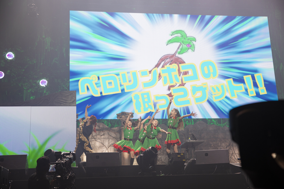 子どもダンサー4人と協力して「ペロリンポコの根っこ」を引っこ抜いた後で歌われた「手を取り合うねからね」も強く心に残った。STAY HOME中のファンに向けてSNSからコーラスパートの募集を呼びかけ制作されたこの曲は、モータウンを想起させるビートと解放的なメロディとともに<手を取りあ合うからね 僕ら手を取り合うからね>というフレーズが響くハートウォームな楽曲。<いつか思い描いた景色 今一緒に観に来たよ!>と歌う彼女の笑顔は、この日のライブの最初のハイライトだった。