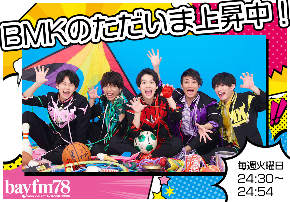 BMKは、東海エリアを中心に活躍中のBOYS AND MENの弟分で、関東圏でのレギュラーラジオのパーソナリティを務めるのは今回が初となる。番組タイトルは『BMKのただいま上昇中!』で、コンセプトは“BMK出版社”。番組を1つの出版社に見立ててメンバーが記者や編集者に扮してコーナーを展開していく。