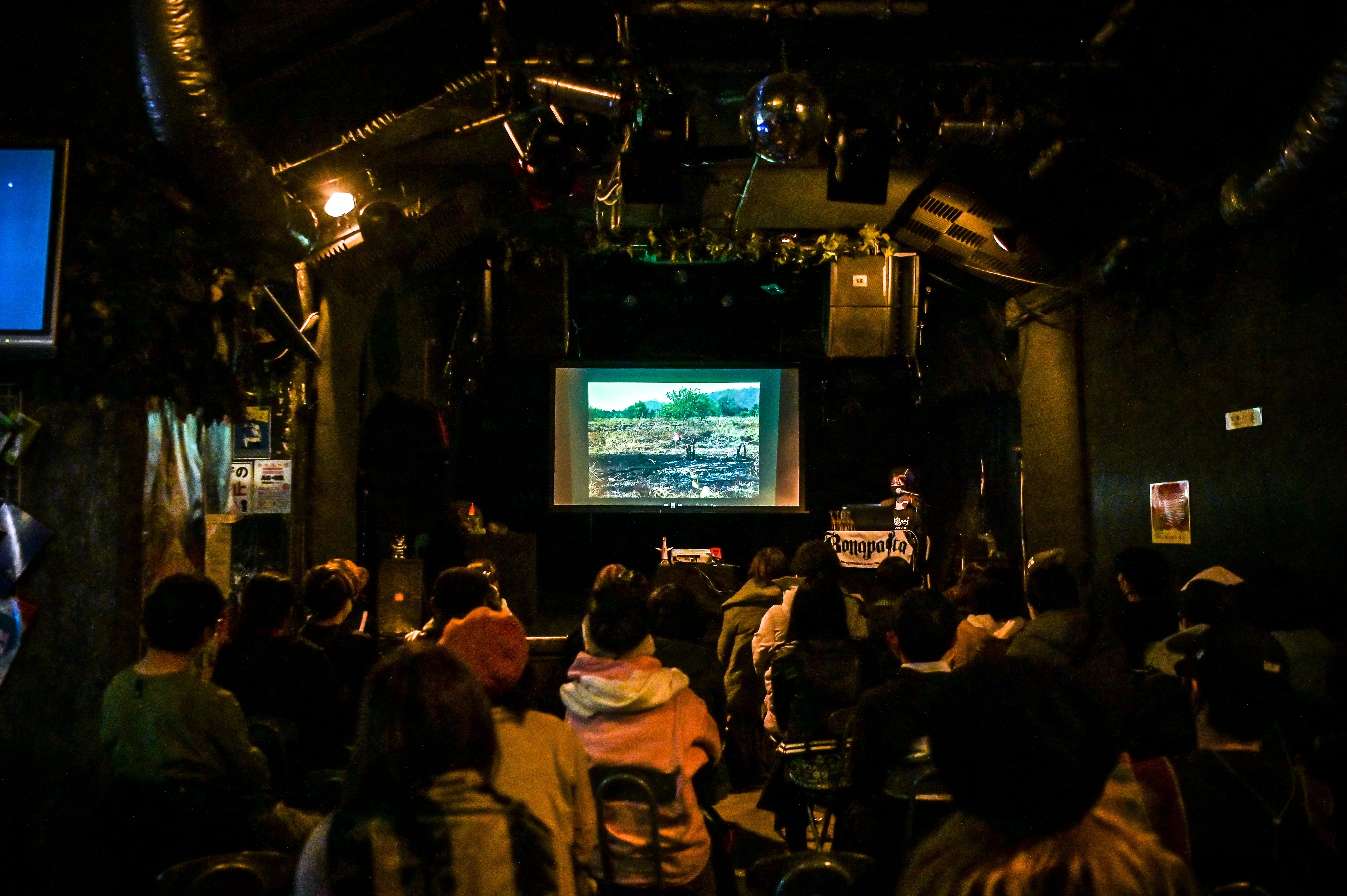 「ライブハウスでアーティストがライブできる日までの、繋ぎの一日になりたい。2020年の今この時期に出来る精一杯がこの形でした」と、イベントの主旨を伝えると、一枚ずつ写真が映し出される。スライド写真は3つのテーマで構成され、20年前に彼女がフィルムカメラで撮影した旅先での写真にはじまり、映画のスチール写真、音楽のアーティスト写真やジャケット写真。そして彼女のライフワークとなっている、東日本大震災直後から撮り続けている10年分の写真。最後はたくさんのミュージシャンのライブ写真。20年間で撮り続けてきた数万枚の中から選ばれた、数百枚の写真がゆっくりとスクリーンに映し出されていく。一枚一枚の写真に込められた想いや当時のエピソードを話しながら、「写真は写心。心を写すもの」だと、写真に懸ける想いを語る彼女。その口調はとても穏やかでおっとりとしている。「喋るのが苦手だから写真を写してきた」というのが、少し納得できる。