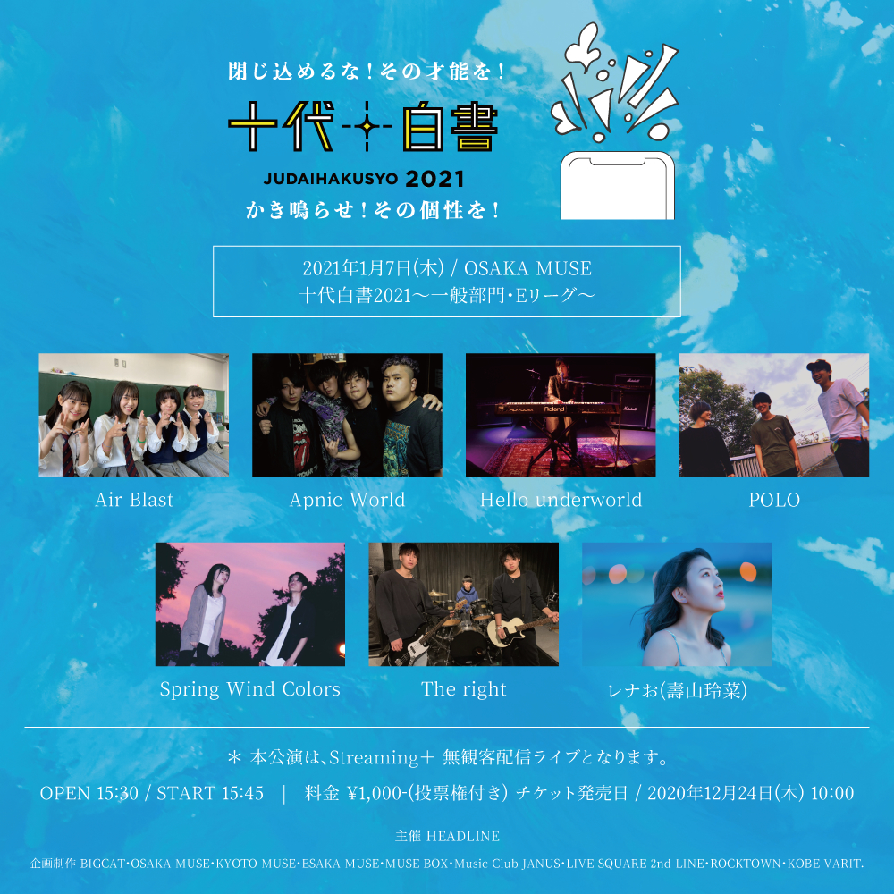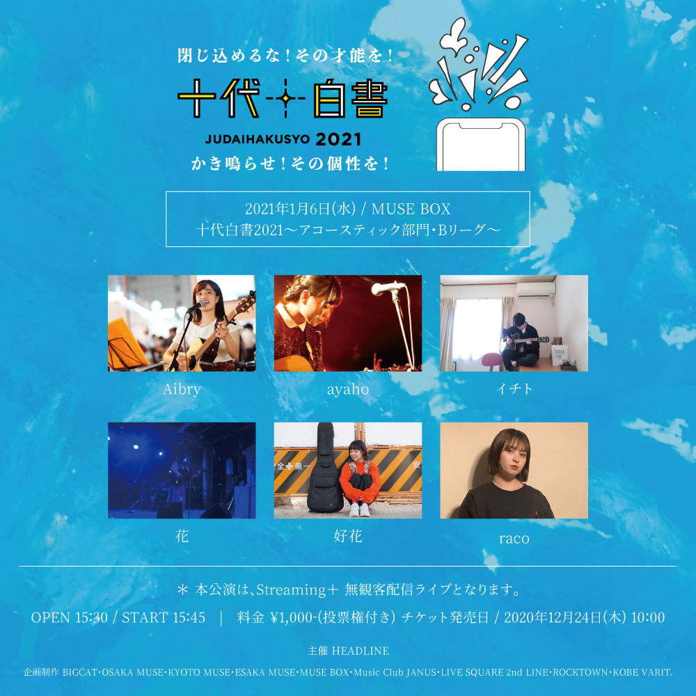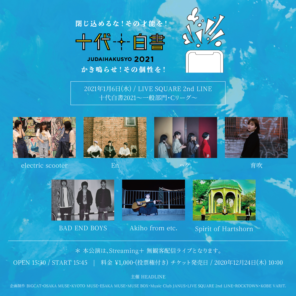 2021年1月4日(月)〜7日(木)の4日間『十代白書2021』の予選大会が、初の無観客配信ライブとして開催されStreaming+にて配信される。