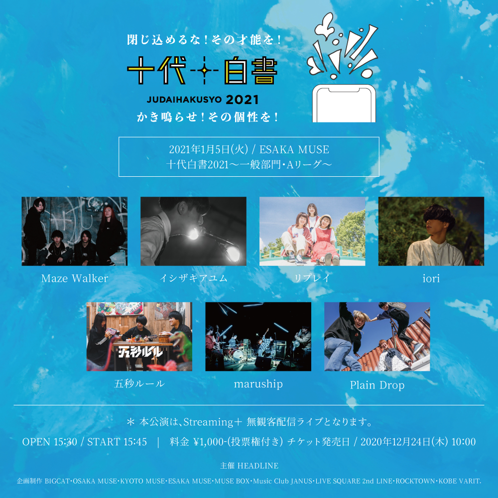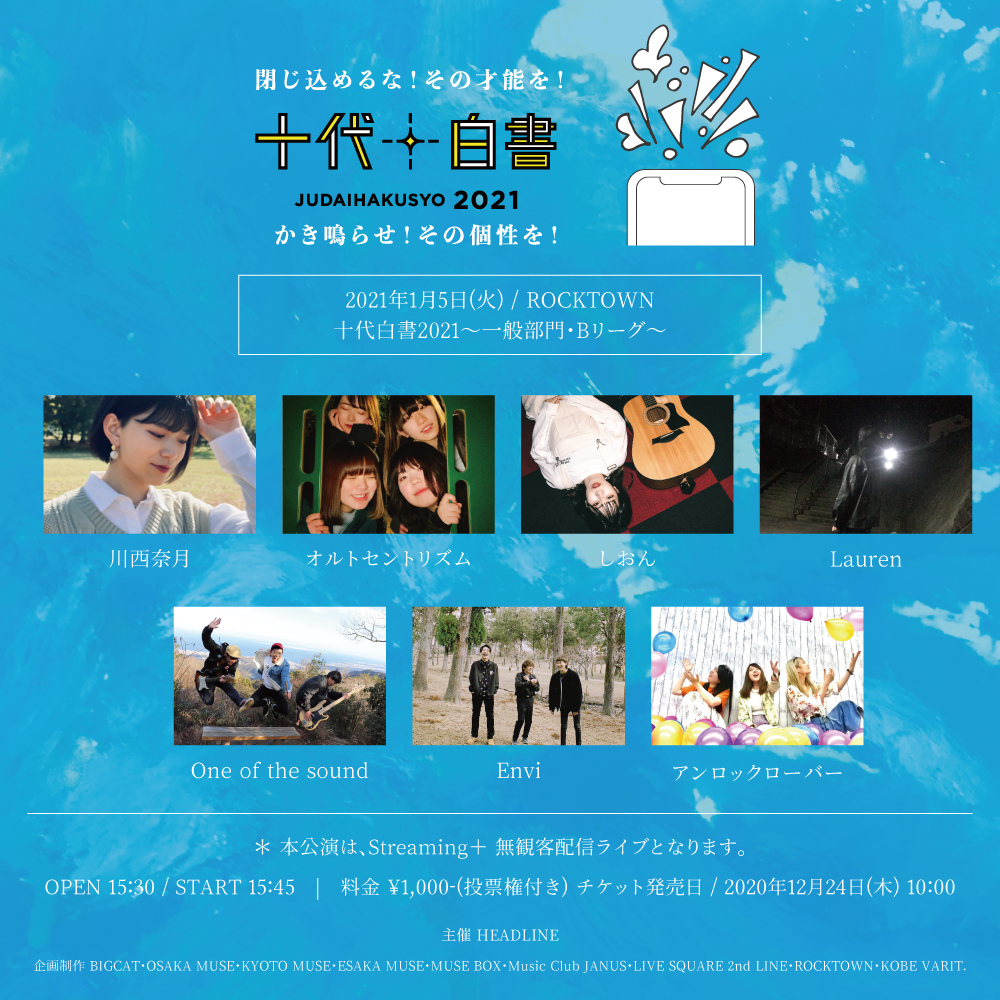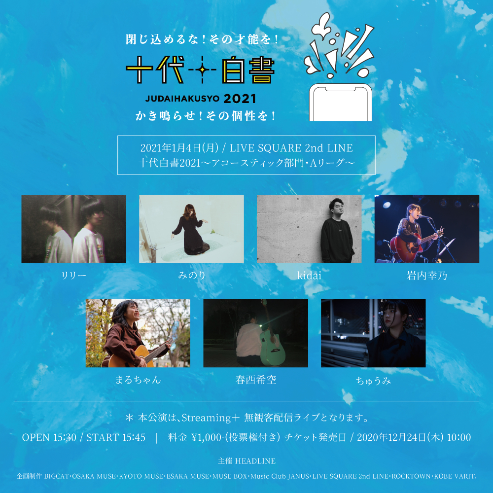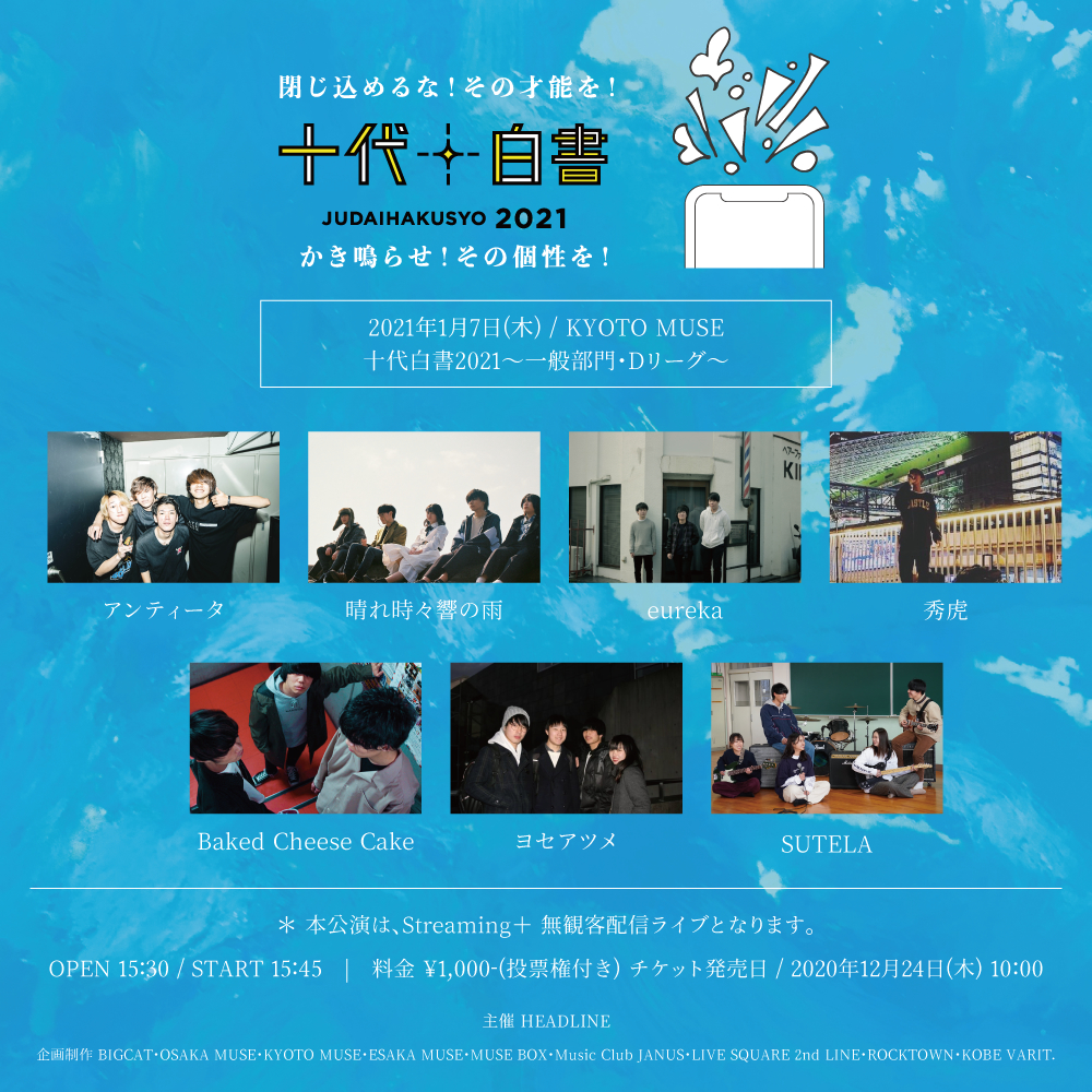 2021年1月4日(月)〜7日(木)の4日間『十代白書2021』の予選大会が、初の無観客配信ライブとして開催されStreaming+にて配信される。