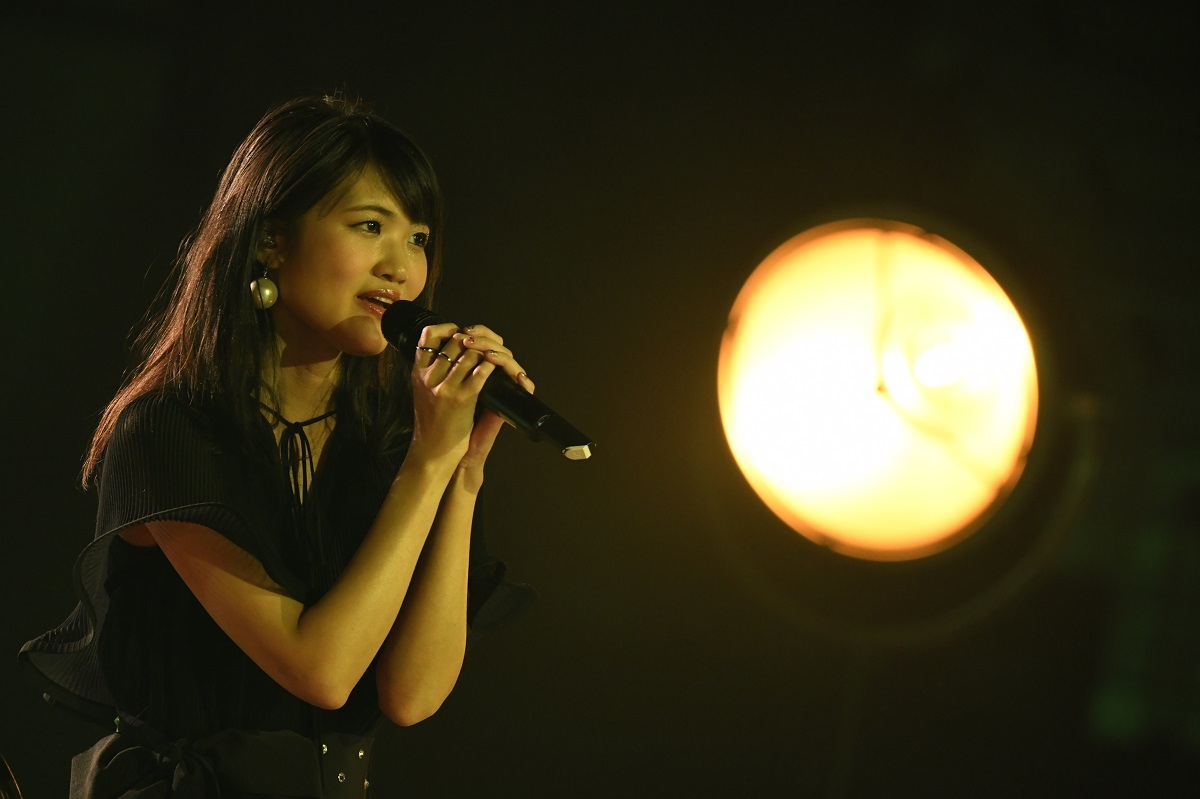 「やさしい希望 (Bossa Nova)」からは、バンドメンバー4人が横並びになっての演奏が始まる。「Akasaka5」では原曲よりも歌詞の登場人物にグっとよせるように、声色をかなりキュートにして歌ってみせる。ここまでの少しシックかつ大人びていたムードとは違った空気で、声色に合わせて自然と表情が変わるのも、ハッキリと見て取れるのが配信の良い所。