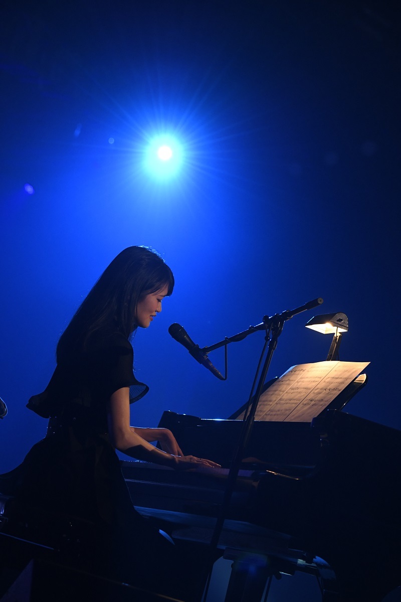 後ろのカーテンに花畑の映像が映し出される中、バンド演奏も相まって音源よりもタイトに鳴らされたこの曲は、ここまでのムードにはなかった力強さをあった。「ここは幸せの入り口 絡まった蔦を解いて 解いて その先へ」と伝えていくイメージは、コロナ禍がすべて終わったあとの世界への期待感を引き起こすようなものだった。
