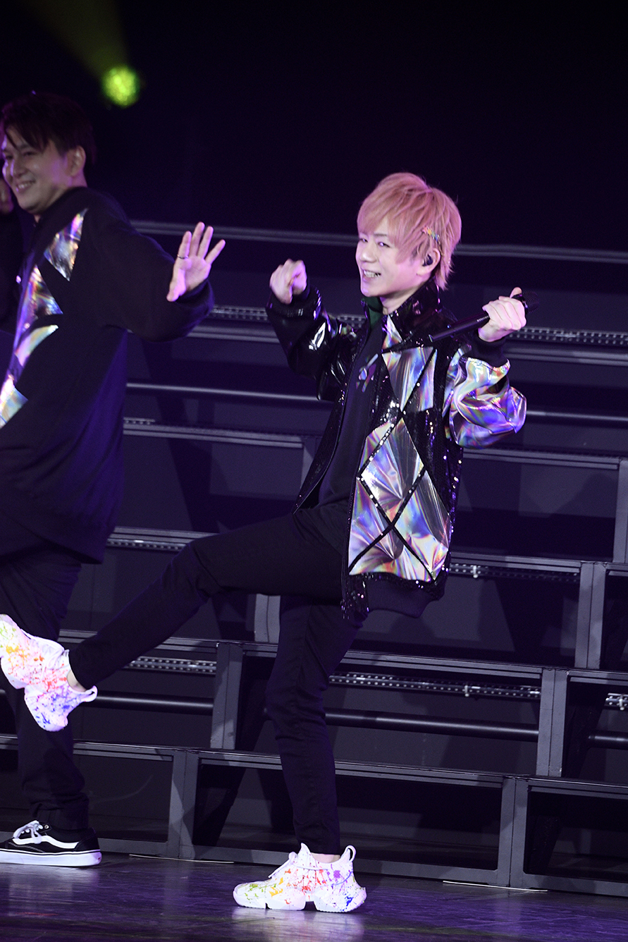 かと思うと、シャッフルナンバー「ポーカーフェイク」を挑発的な笑みを浮かべながら歌う4人。ダンサーとのダイナミックなフォーメーションダンス、艶っぽい歌声で魅せる「微笑、香り、君と僕を繋ぐ」にしても。誰かひとりなんて選べない!と惑わせる「Peacock Epoch」にしても。振付も歌い方も大人すぎて、4人が新たな表現の扉を開けてしまった「ホエールホール」にしても。賑やかトークやとんでも企画で見せる素顔とのギャップに萌えて、ますます彼らの魅力にはまってしまう。