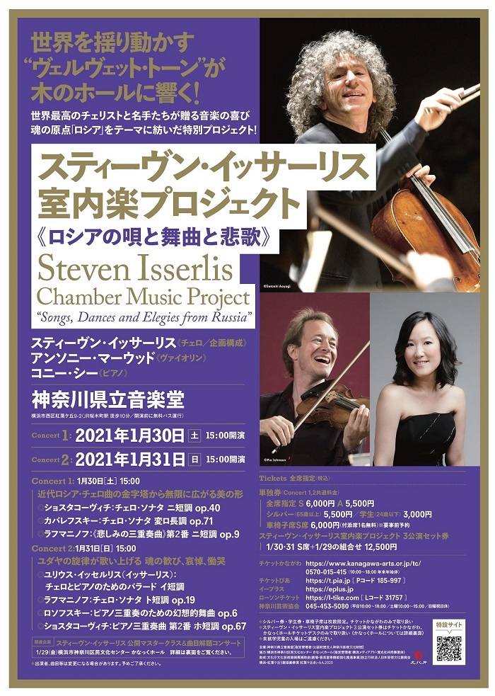 2021年1月30日(土)・31日(日)神奈川県立音楽堂にて開催予定であった、音楽堂ヴィルトゥオーゾ・シリーズ スティーヴン・イッサーリス室内楽プロジェクト『ロシアの唄と舞曲と悲歌』の公演中止が公式サイトにて発表された。