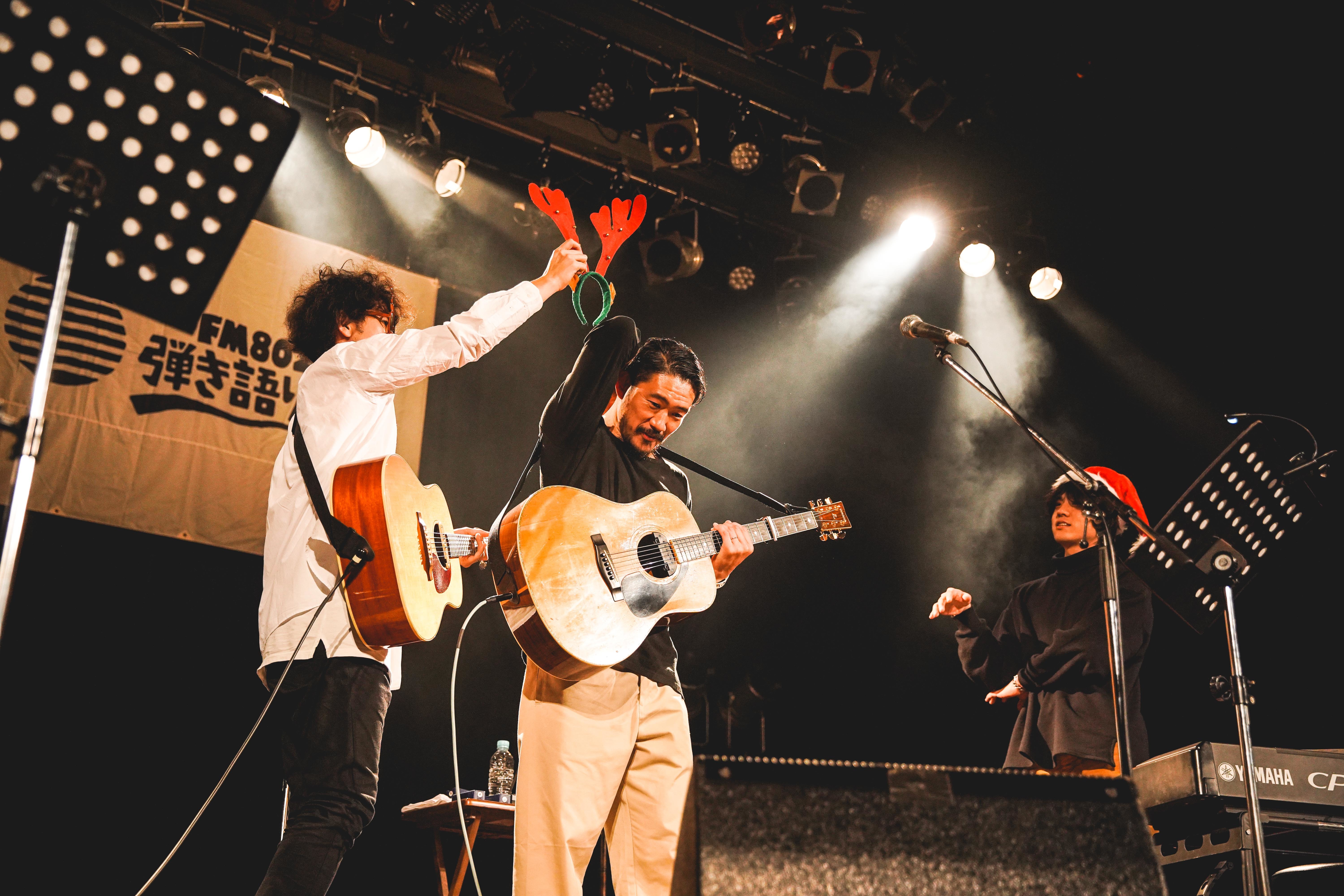 セッションタイムでは、クリスマス風の扮装をした3人が「赤鼻のトナカイ」を不安げにやり遂げ(笑)、「一応、アンコールでやる曲のリクエストを募ったんですけど、リベンジ編ということもあって、この前と同じ曲をやろうかなと」(松本)、「この曲は皆さん知っているけど、歌うと難しいよね。改めて坂本九ってすごかったんだなって」(TOSHI-LOW)と、最後は昭和の名曲「見上げてごらん夜の星を」を全員で披露。松本のピアノにいざなわれ、異なる魅力の三声が寄り添い溶け合っていく極上のセッションは、コロナ禍にリモート編として開催されてきた2020年のFM802弾き語り部が、少しずつ現場を取り戻したのと同様、見る者の心に希望を灯した素晴らしいエンディングとなった。