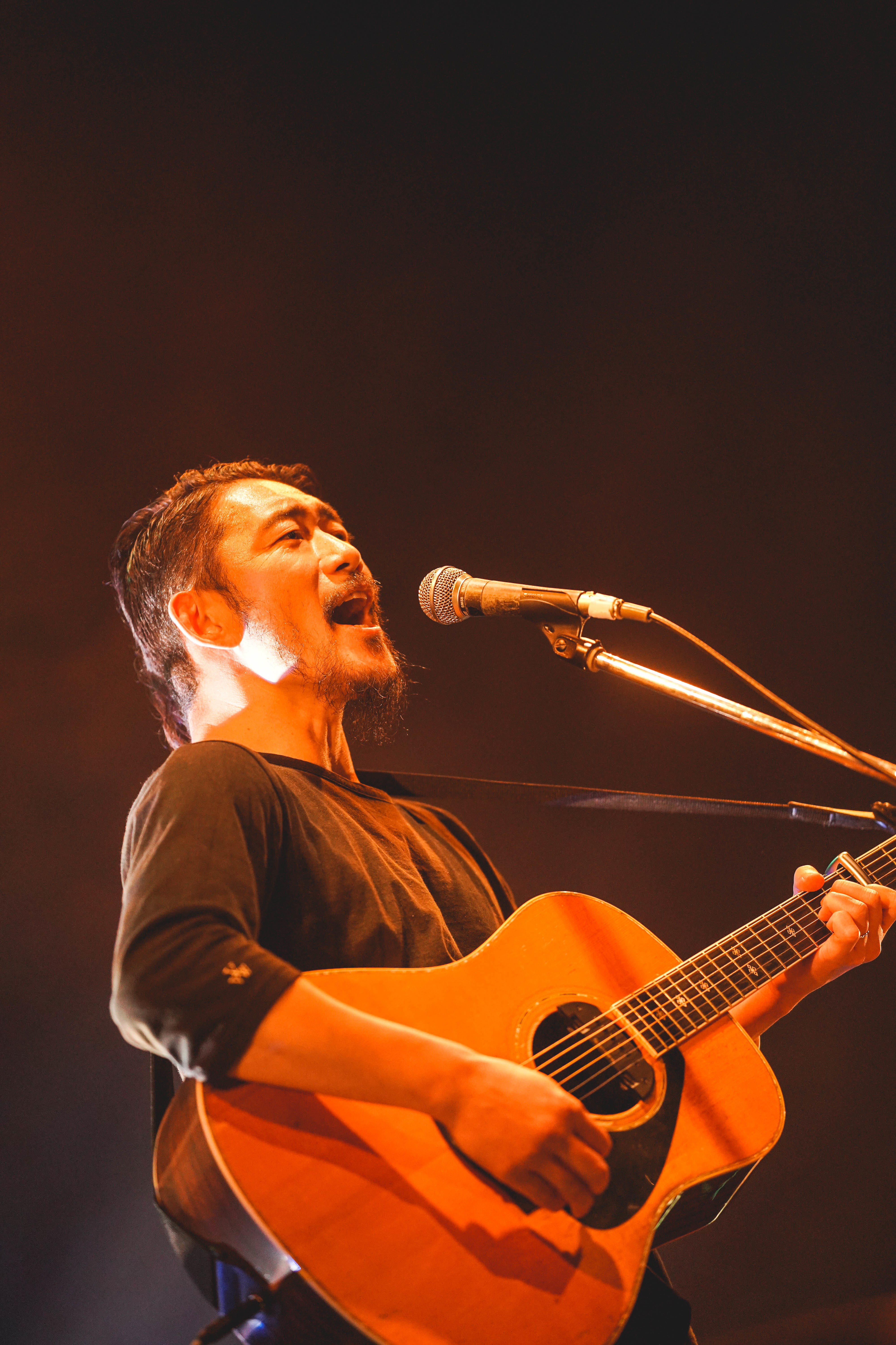 まずはBRAHMANの「今夜」を、松本がギターとハモリ、TOSHI-LOWが歌とハーモニカという豪華共演でお届け。極めてミニマムな編成ながら、その感動はマキシマム。2人でそっと言葉を重ね合わせていくさまにしょっぱなから胸が熱くなる。「何だろうね、めっちゃ素敵な曲になっちゃった」とTOSHI-LOWが言うのも納得の出来で、ここでは書けない内容のMCをたくさん話しつつ(笑)、「もちろん大もよかったけど、思い出しちゃう人がいて」と、盟友・the HIATUSの「西門の昧爽」のカバーでは、夕景のようなオレンジの照明に照らされ、ひときわエモーショナルに歌い上げる。