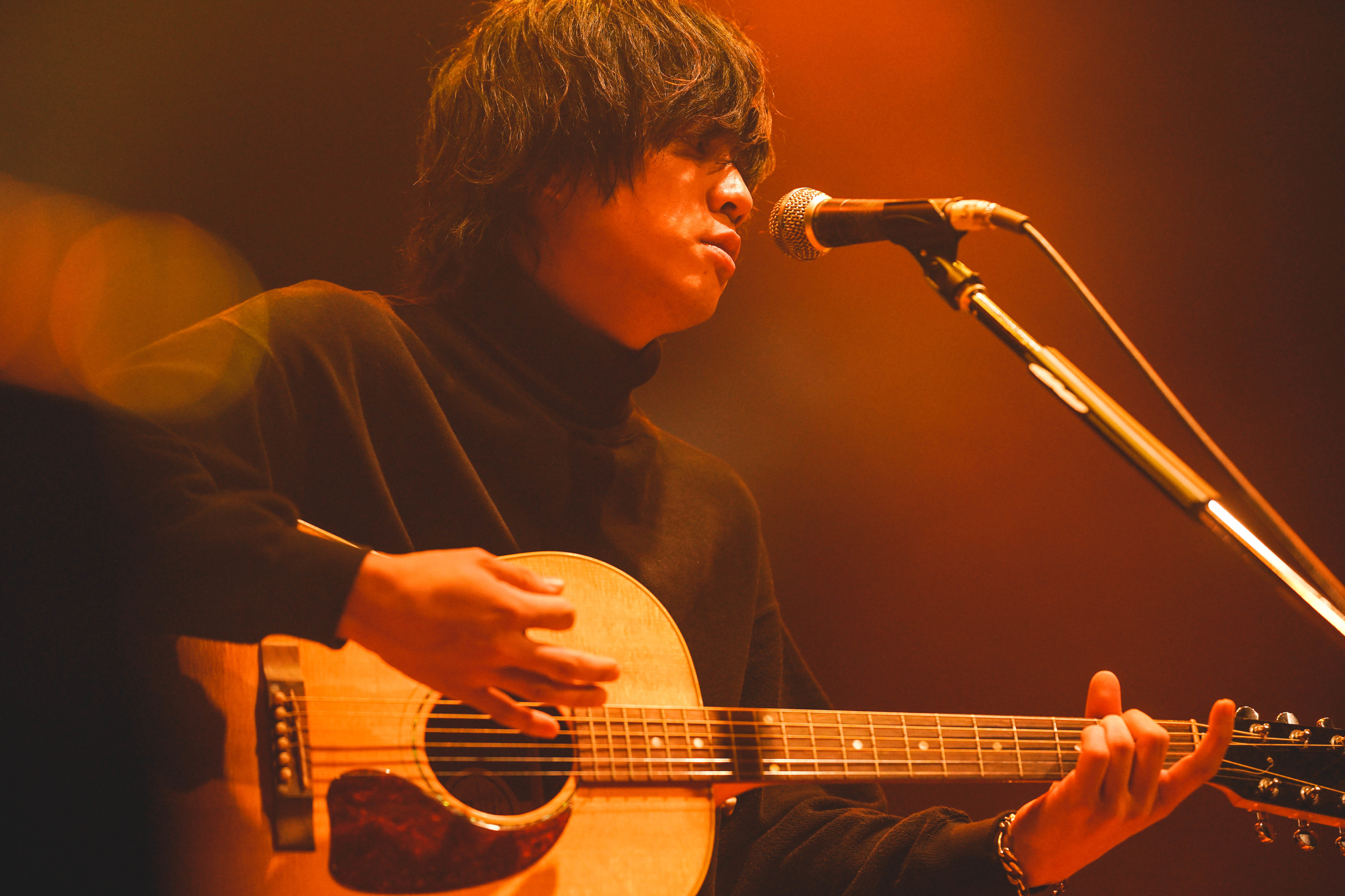 「LAMP IN TERRENが大阪で一番ライブをやっているのって多分BIGCATなんですよ。完全にホームみたいな気持ちになってきて、すごくありがたいしうれしいです。FM802弾き語り部はもう3年ぐらいやっていて、TOSHI-LOWさんと(菅原)卓郎さんに関しては、良き先輩に恵まれたなと思ってすごく信頼しているというか……今日は別に部長という感じじゃなくて、ただ後輩として楽しみにしていました。今日の出順は、肩の荷を早く下ろしたいので僕が決めたんですけど(笑)。あと、僕は大阪で弾き語りをすることがめっちゃ多いので、今日限りでこのギターをFM802に贈呈することにしました(笑)」