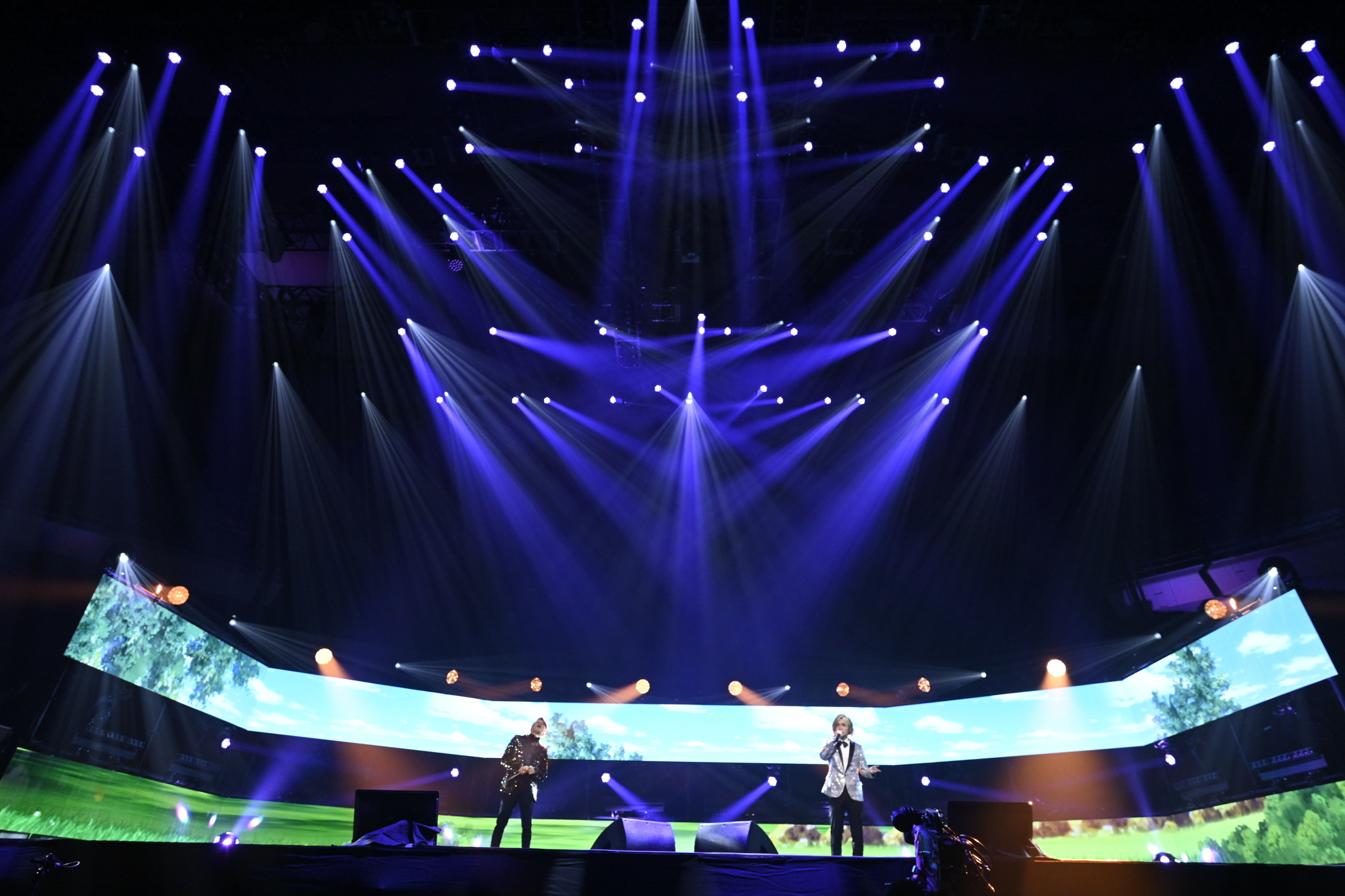 23組目には、男性5人組バンドFLOWが登場した。まずはTVアニメ『コードギアス反逆のルルーシュ』より「COLORS」を披露。曲の歌詞に合わせ、映像演出で天井に青空が広がる。さらに2曲目には、リリース前の新曲でライブとしては初披露となる、TVアニメ『シャドウバース』オープニングテーマの「新世界」を演奏。壮大な行進曲とロックサウンドが融合した楽曲に、客席の黄色いサイリウムが揺れて応える。