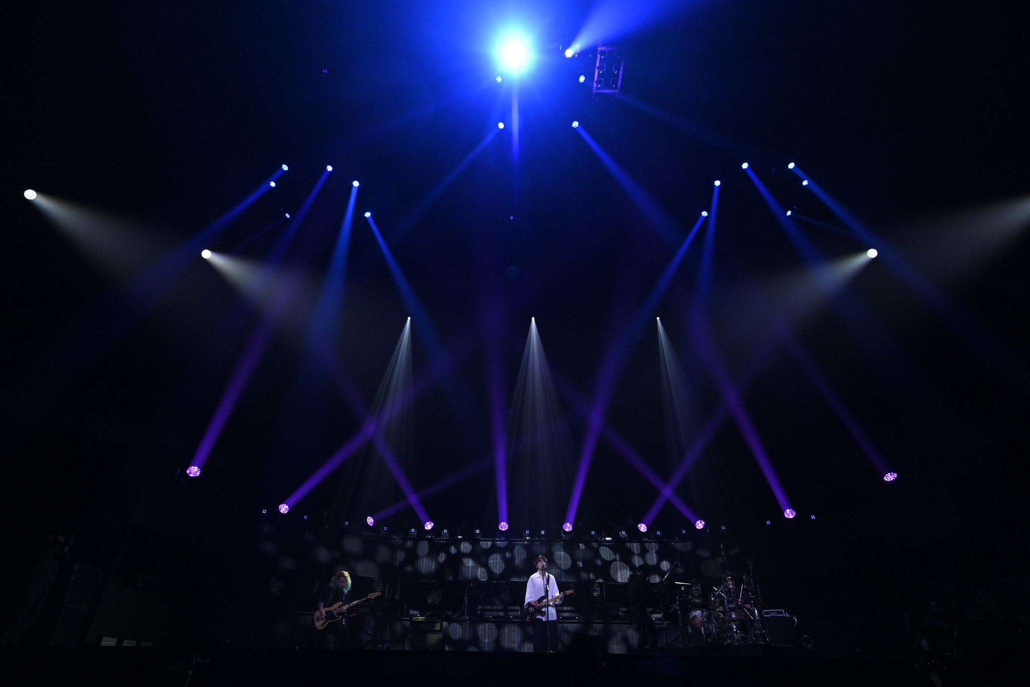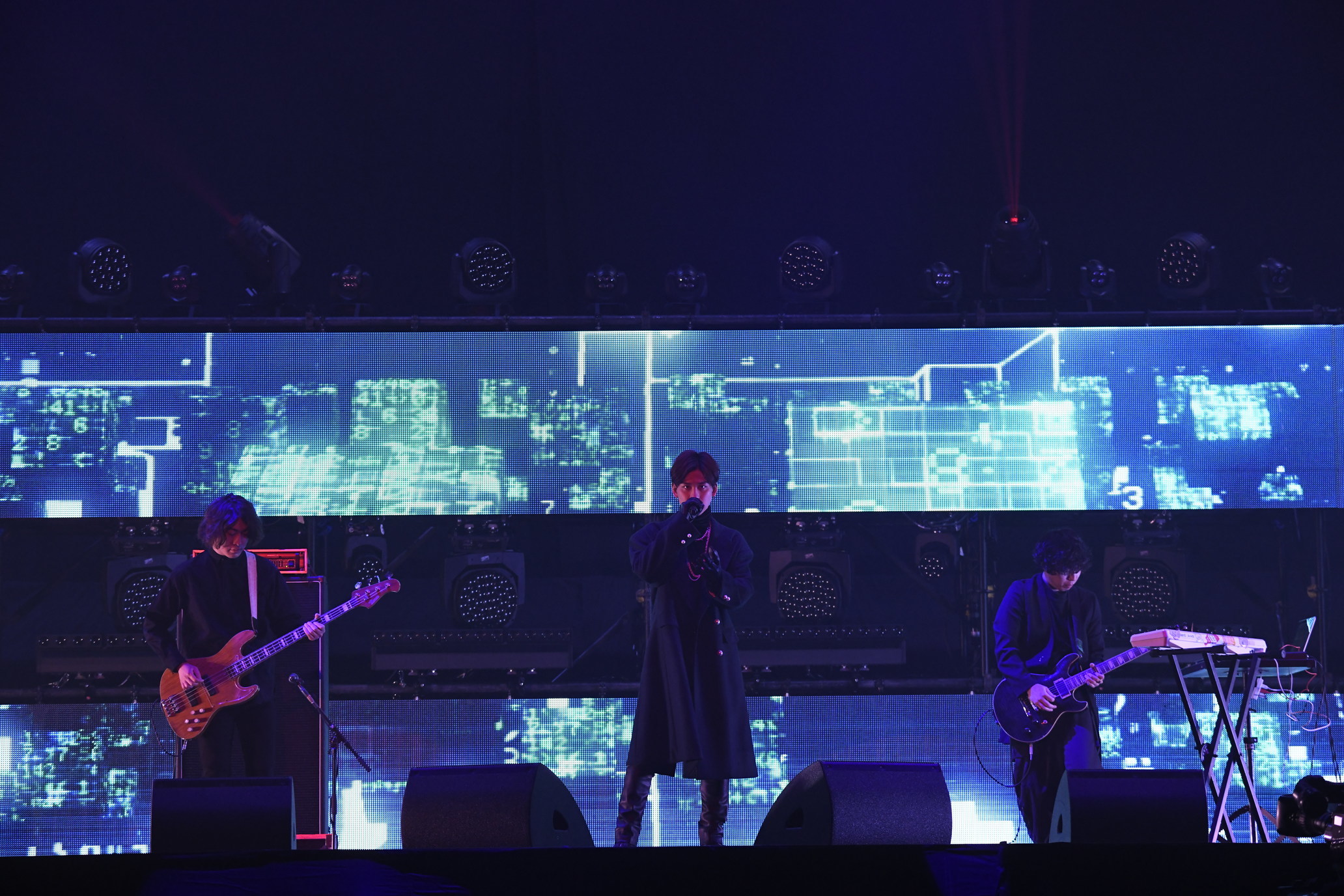 続けて2曲目には、TVアニメ『魔道祖師』前塵編オープニングテーマの「千夜想歌」を披露。1曲目とは打って変わって、観客席のサイリウムは白一色になる。ヴォーカル・コヤマヒデカズの感情的な歌声に乗り、切実な想いを綴った歌詞が、言葉が溢れていった。
