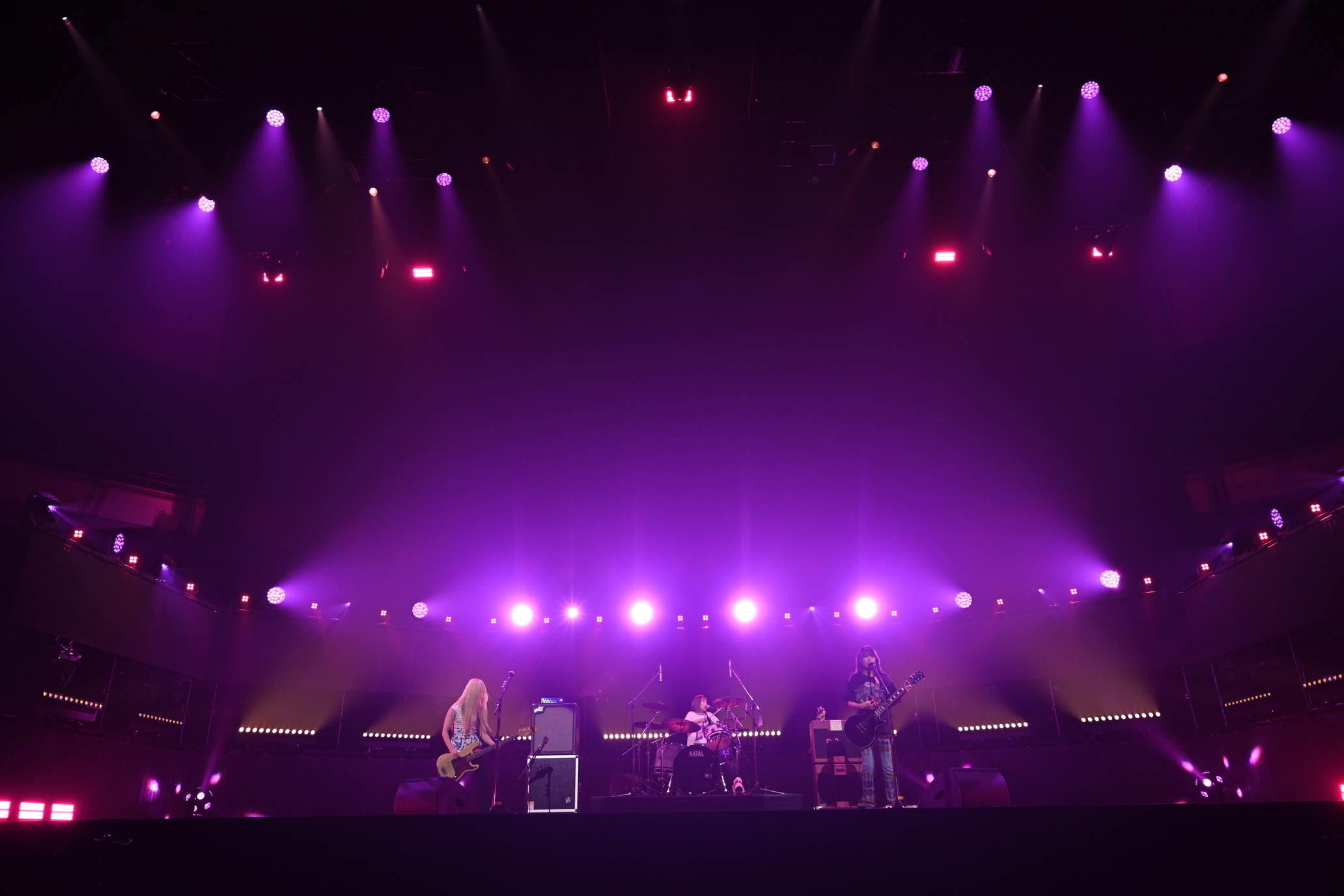 2番手として登場したのは、北澤ゆうほ(Gt&Vo)・石渡マキコ(Ba)・大貫みく(Dr)からなるガールズバンドthe peggiesだ。演奏したのは、TVアニメ『青春ブタ野郎はバニーガール先輩の夢を見ない』オープニングテーマ「君のせい」、TVアニメ『彼女、お借りします』オープニングテーマ「センチメートル」の2曲である。
