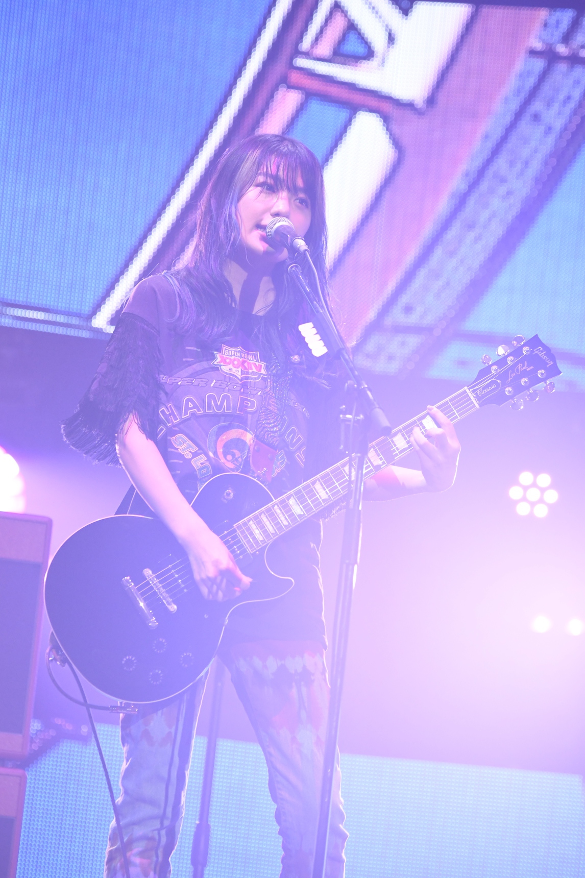 2曲目、TVアニメ『戦翼のシグルドリーヴァ』オープニングテーマ「Higher’s High」の演奏では、ナナヲアカリもギターを持ってパフォーマンスを行う。叫ぶような歌い方でもありながら、それが聴き手の感情を刺激する、ナナヲアカリ節全開でステージを締めくくった。