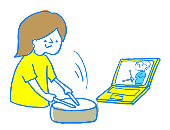 ・レッスンは日英のバイリンガル。海外の太鼓仲間ともバーチャルなワンチームに。