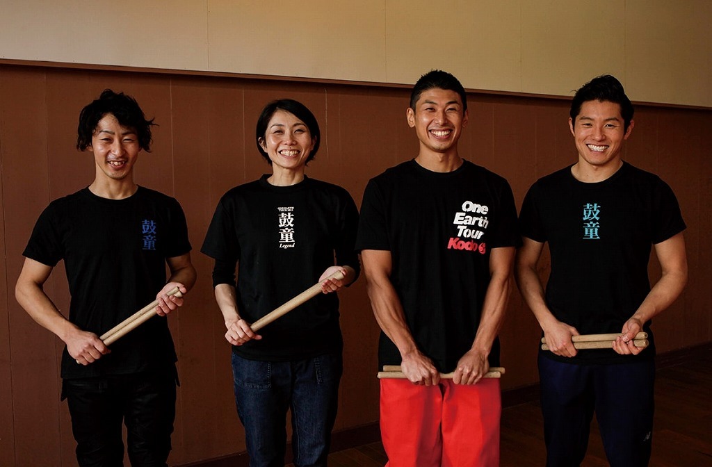 鼓童太鼓の学校 第0期講師 (写真左より)地代純、阿部 好江、中込健太、小野田太陽