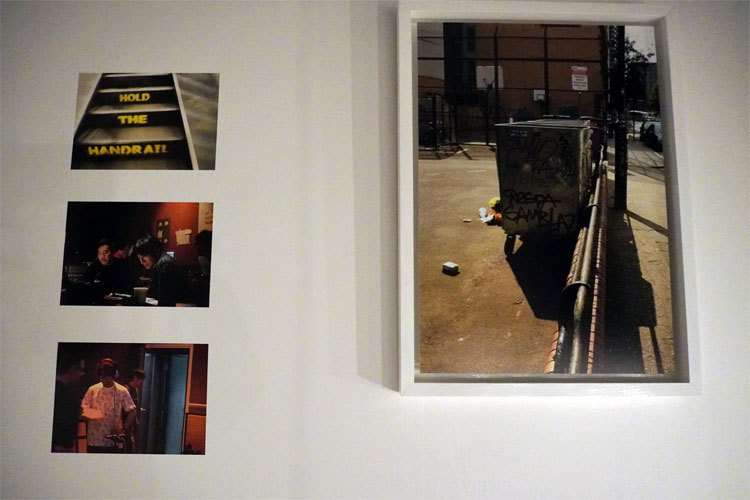 インスタレーションの空間では、大きな2つのスクリーンと、複数の小さなモニターで写真が映し出され、淡々と切り替わっていく。制作現場の雰囲気やレコーディングした街の様子などが、スクリーンとモニターによって同時に視界に入るので、写真が撮られた当時をリアルに体感できるように思う。