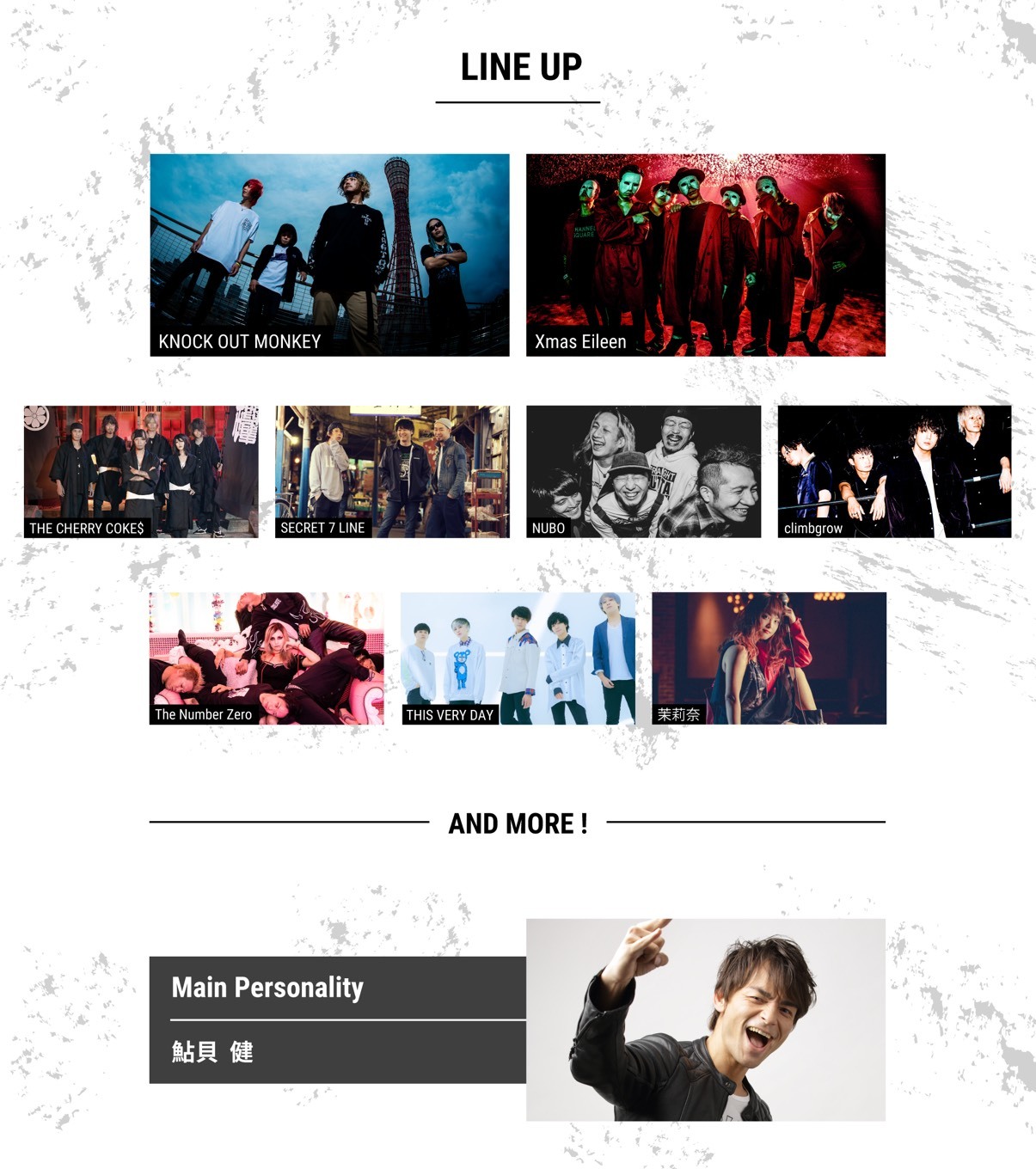 出演アーティスト第1弾として、THE CHERRY COKE$、climbgrow、KNOCK OUT MONKEY、NUBO、TheNumberZero、茉莉奈、SECRET 7 LINE、THIS VERY DAY、Xmas Eileenの9組が決定。出演アーティスト第2弾は、2月上旬に発表予定とのこと。