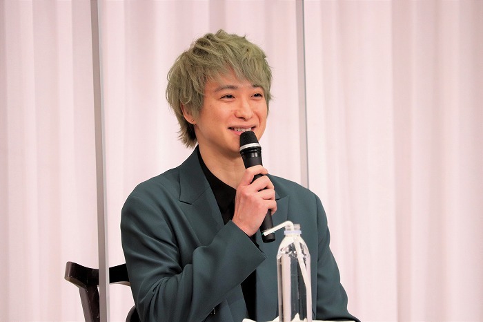また、松田は「僕あまり緊張しないんですけど、今日はものすごく緊張していたんです。この作品に懸ける意気込みがあって昨日も全然寝れなくて。さっき、ここに出てくる直前の部屋でずっと緊張して『どうしよう』と思っていたんですけど、祥太くんが水をガッと飲んで『やっぱりストレートは利きますね~』とギャグを言われたんですよ!(隣で戸塚がマイクオフ状態で大笑い)。それですっごくラクになった。実際こうしてお話をしてみると、この状況で普段通りの、家で雑誌でも読んでいるかのようなテンションでこれるっていう強さってすごいなと思いました」と戸塚の強心臓に感心していた。