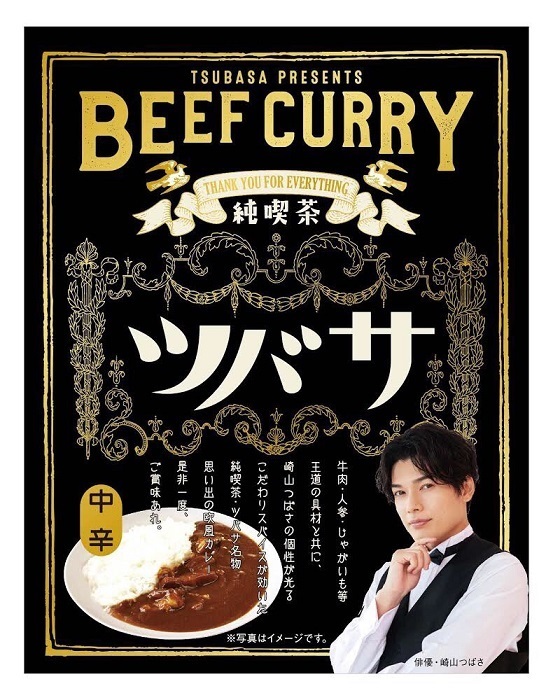 舞台や映画などで活躍中の俳優・崎⼭つばさがプロデュースしたこだわりのレトルトカレー「崎⼭ツバサの純喫茶ビーフカレー」が、2020年10⽉に通販のみで販売され、わずか10分で完売し、1万個を販売。その1万個販売記念として、ドン・キホーテ池袋東⼝駅前店で、2021年2⽉1⽇(⽉)10時から店舗販売が決定した。