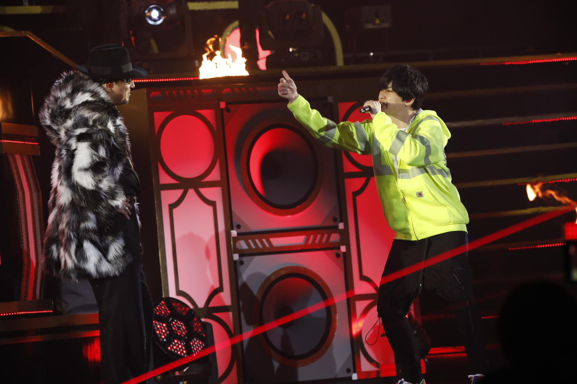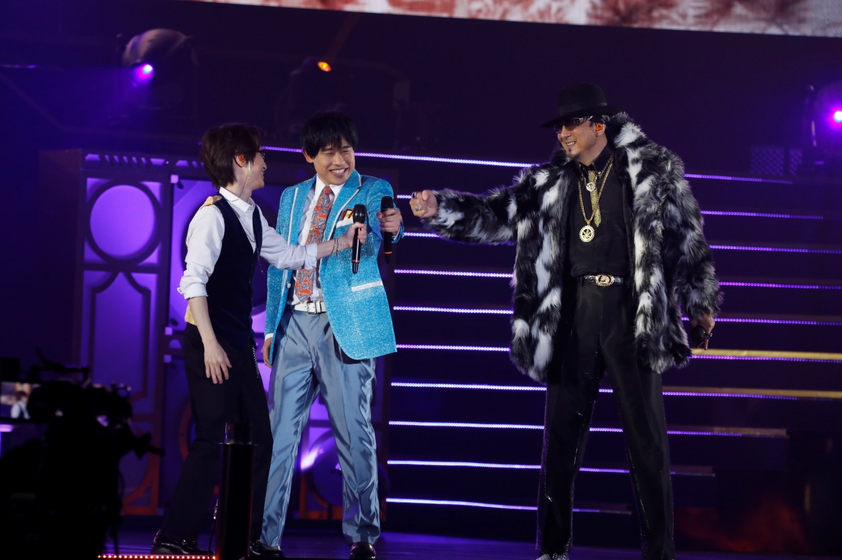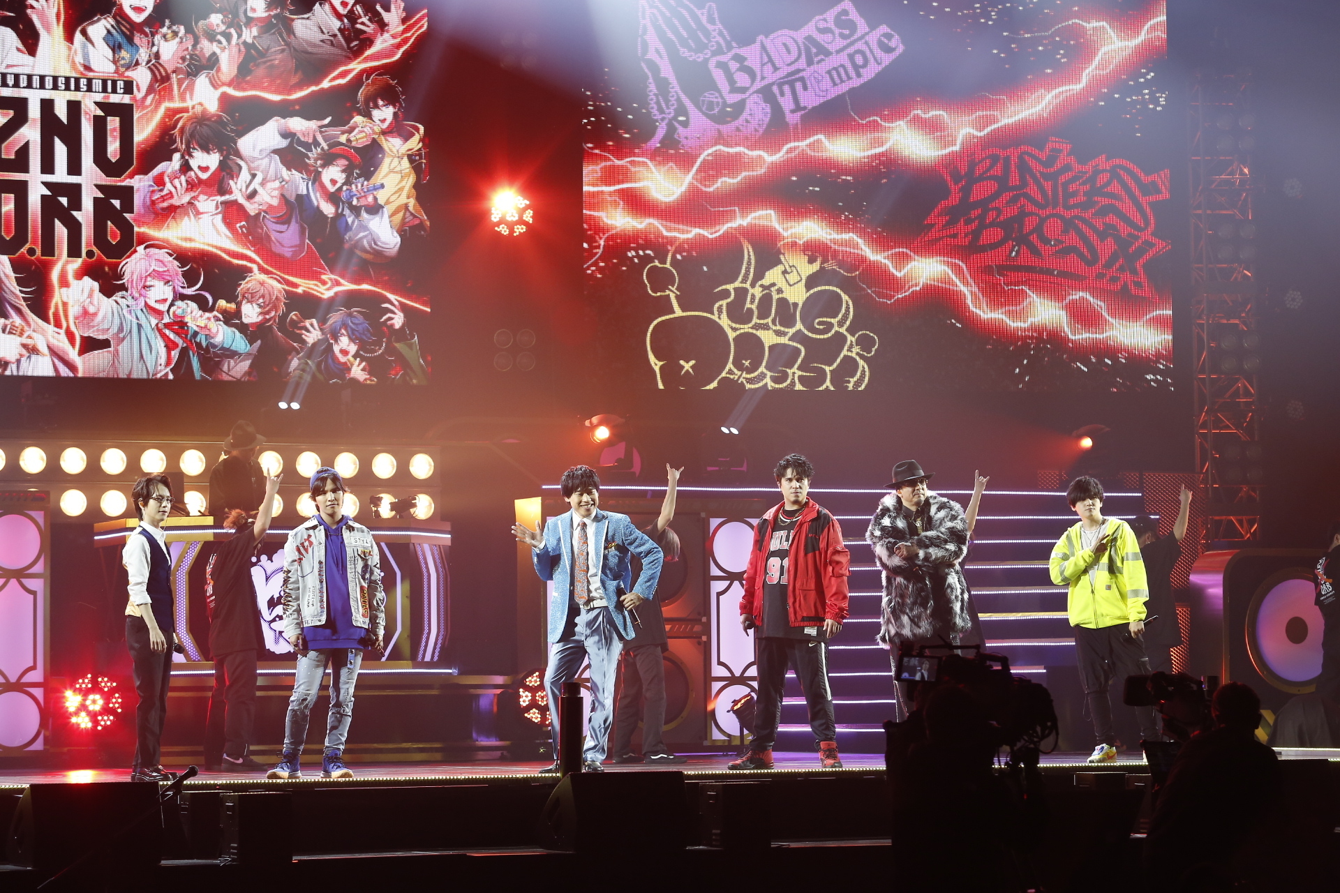 さらに、ウルフルズ×SHINGO★西成というタッグが話題の新曲、オオサカ・ディビジョン“どついたれ本舗”「笑オオサカ!~What a OSAKA!」や、変態紳士クラブが楽曲提供したイケブクロ・ディビジョン“Buster Bros!!!”による新曲「Re:start!!!」も初披露された。