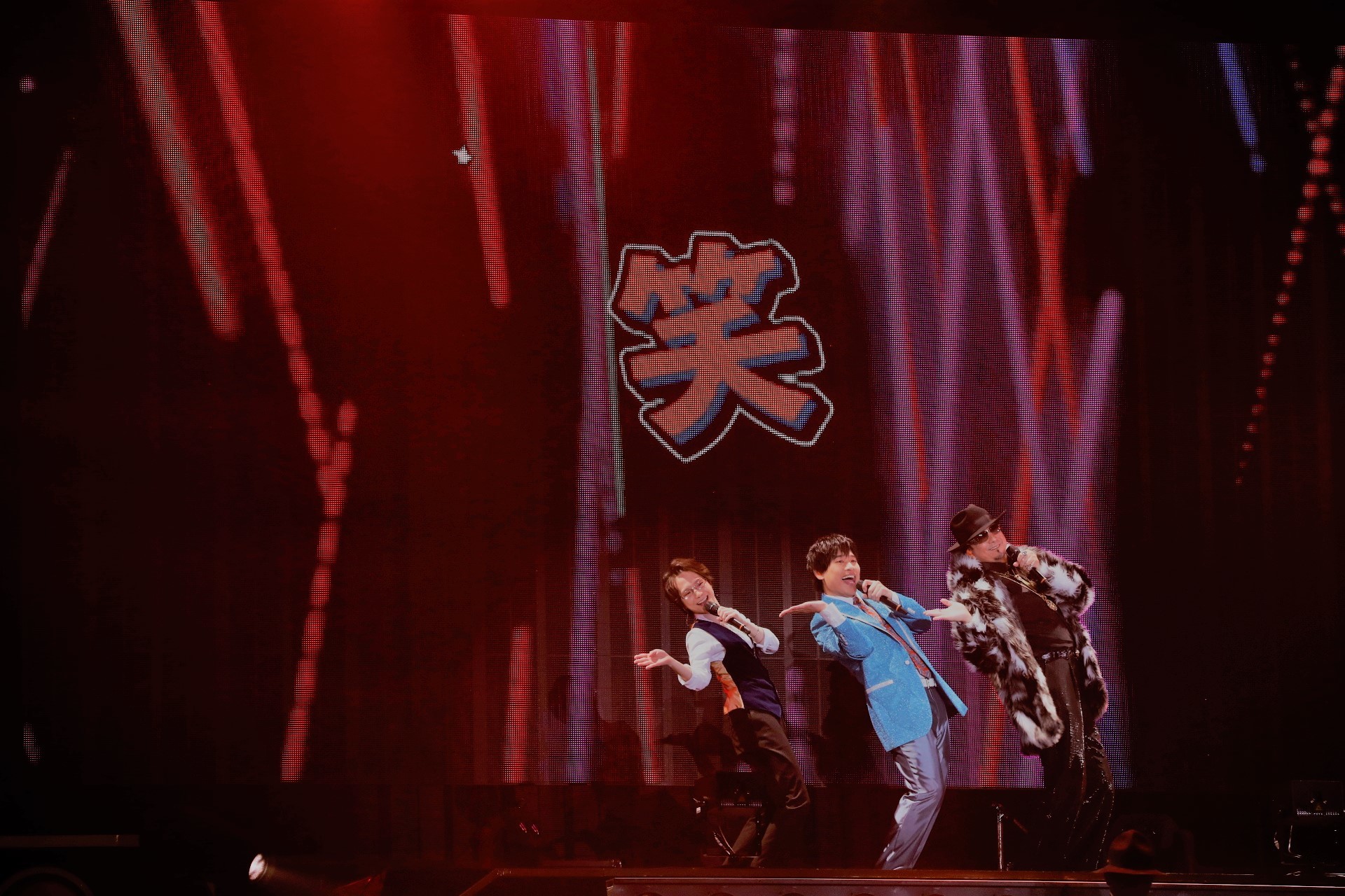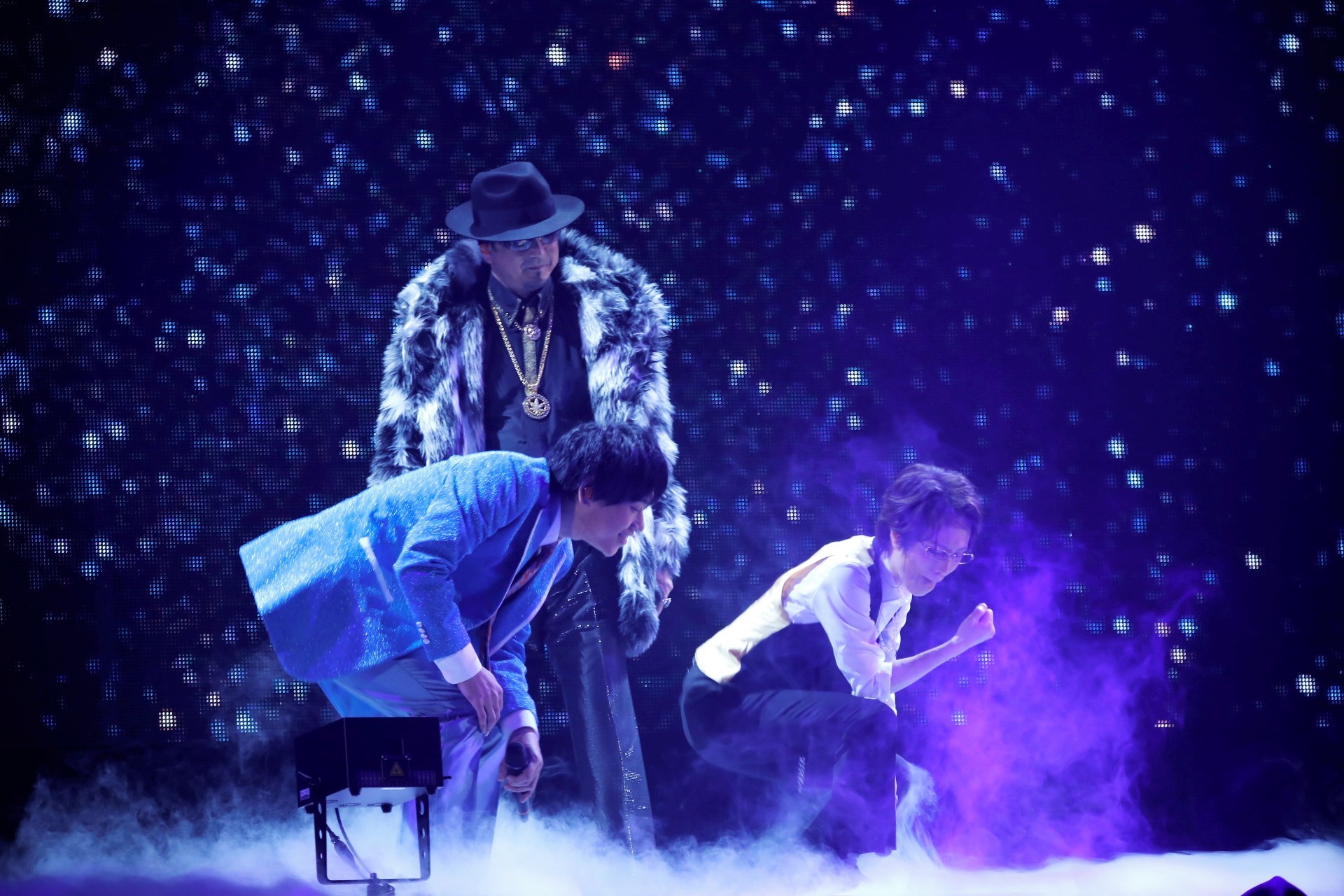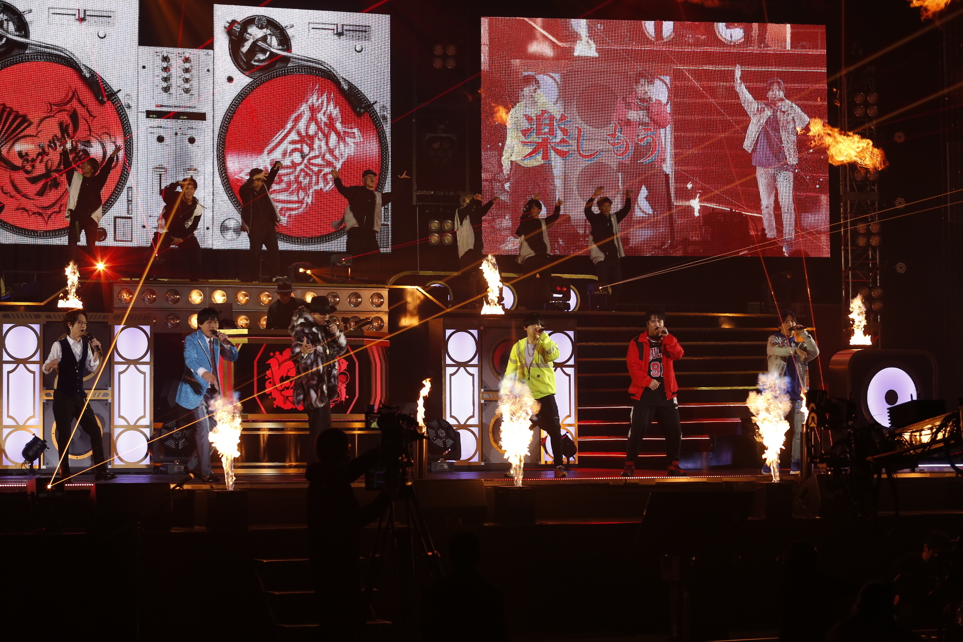 さらに、ウルフルズ×SHINGO★西成というタッグが話題の新曲、オオサカ・ディビジョン“どついたれ本舗”「笑オオサカ!~What a OSAKA!」や、変態紳士クラブが楽曲提供したイケブクロ・ディビジョン“Buster Bros!!!”による新曲「Re:start!!!」も初披露された。