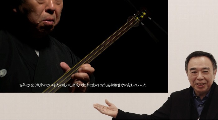 有料コンテンツでは、文字解説付きの作品を制作。常磐津節名曲の特別ヴァージョン『常磐津節「本朝廿四孝奥庭狐火之段(ほんちょうにじゅうしこうおくにわきつねびのだん)」(通称 狐火)』、そして、江戸時代の戯作者・近松門左衛門による浄瑠璃が現代に通じる心情を描き出す佳曲『一中節「小春髪結之段(こはるかみゆいのだん)」(通称 小春)』の2編では、音が表す情景や人物の心の動きがよくわかる文字解説を見ながら高度な演奏を鑑賞できる内容になっているという。
