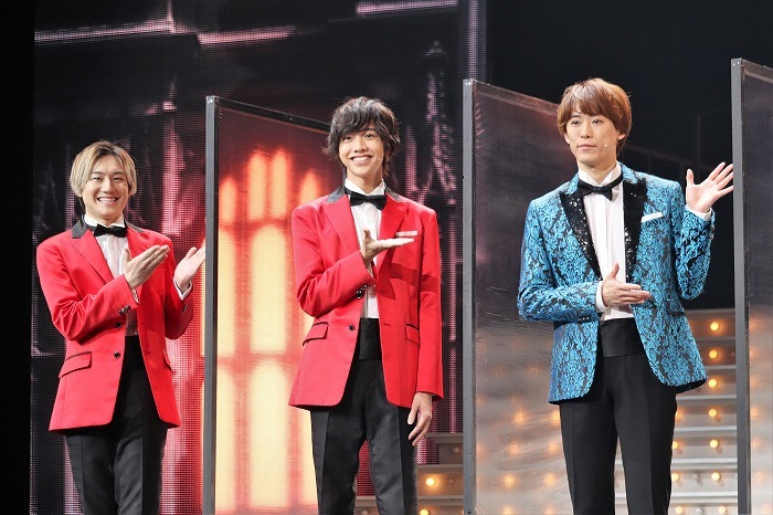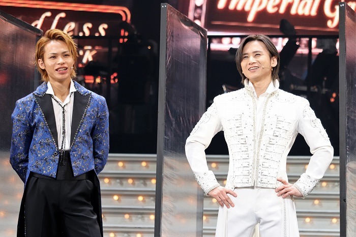 話はゲネプロで自ら暴露した「Dead or Alive」パフォーマンス時の股裂け事件へ。「あれから新しくズボンを作っていただいて!ストレッチ素材になったのでもう大丈夫です!」と満面の笑みを浮かべる光一。この話から自身の体重増減について広がると、「体重を落とすって簡単なんですよ……って、また世の中をいらっとさせる発言を。体重を増やす方が苦労していて(笑)。それこそ初演のころは51、52kgくらいで。いま60kgくらいあるんですよ。だから昔の自分の写真を観ると、『うわ、細っ!』と思います」と、笑いながら振り返っていた。