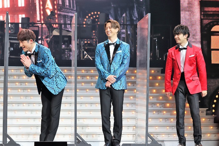 越岡は、「カンパニーのなかで、最も節目をともに経験している越岡裕貴です」とアピールしつつ挨拶。「コッシーが出演すると良くないことが起こるんだよね」と毎度のように光一がイジる。「足の指を折ったり、パネルが倒れたり……」でも越岡は「回数は年齢と反比例して、すごく若返っているなと思うんです。この勢いで2000回行ってほしいなという後輩の思いです」と祝辞に変えていた。そして続く松崎は「ここからは僕のターンですので邪魔しないでくださいね」と光一の割り込みトーク(笑)を牽制しつつ、祝辞を述べていた。