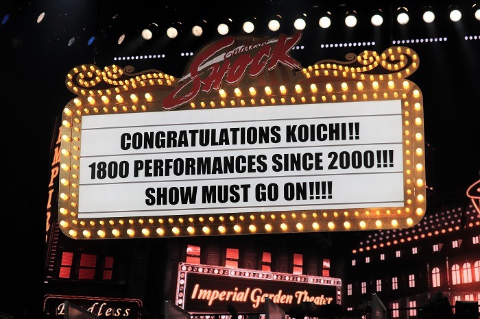 1800回公演のカーテンコールでは真っ赤な薔薇を180本プレゼントされた。「薔薇って1本だと軽いものじゃないですか。それが180本になるとどんな重みなんだろうと思って一瞬考えました。これを支えてくださったジャニーさん、東宝さん、それを支えてくださったお客様、毎回のように大したネタがなくても来てくださる取材陣の方、すべての方に感謝しかないですね」と笑いも交えつつ語る光一にカーテンコールで前田から勧められた「薔薇風呂」に入ってみるか?との声に「入ろっかな(笑)。インスタにあげますね。帝劇の楽屋で。あ、スタッフさん、今日(劇場の)出が遅くなるかもです」とウキウキと語っていた。