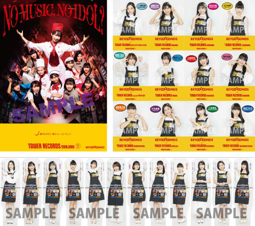 デビューシングルがオリコンウィークリーチャート1位を獲得し、2019年の日本レコード大賞では最優秀新人賞を受賞した注目グループBEYOOOOONDSの新作発売を記念して、タワーレコードが「NO MUSIC, NO IDOL?」コラボレーションヴィジュアルを制作。その2ndシングルを対象15店舖のいずれかで購入した人にはこのコラボヴィジュアルを使用したポスターを、タワーレコード オンラインで購入した人には同デザインのポストカードを、予約者優先ならびに購入者先着で配布する。