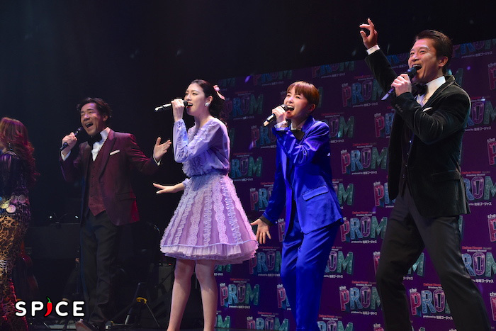 製作発表会では劇中の3曲が披露された。アンジー(霧矢大夢)とエマによる「ZAZZ」、D.D.アレン(大黒摩季/草刈民代/保坂知寿)による「目立ちたくないのよ!私」、そして作品のエンディング曲「It's time to dance」だ。生バンドの演奏。短い時間ではあったが、出演者たちは存分に『The PROM』の世界を披露してくれた。