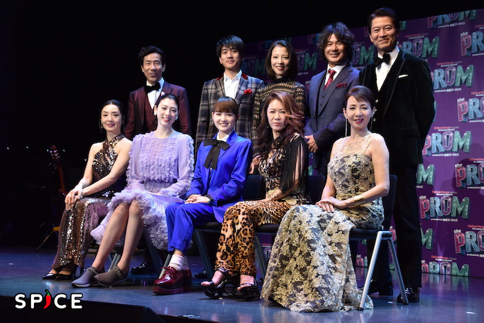 『The PROM』に出演する岸谷五朗、佐賀龍彦、霧矢大夢、TAKE、寺脇康文(後列左から)、草刈民代、三吉彩花、葵わかな、大黒摩季、保坂知寿(前列左から) (撮影:五月女菜穂)