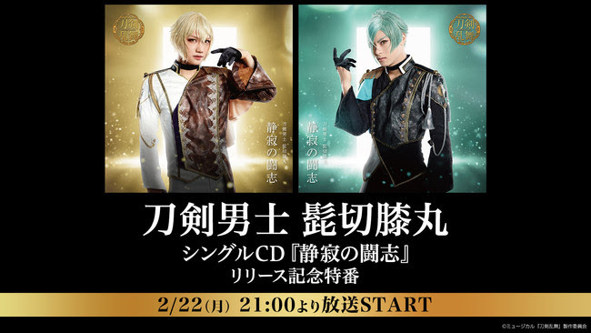 ミュージカル『刀剣乱舞』より2021年2月24日(水)に発売される刀剣男士 髭切膝丸 シングルCD「静寂の闘志」のリリース記念特番が、2月22日(月)21:00よりニコニコ生放送にて配信されることが決定した。