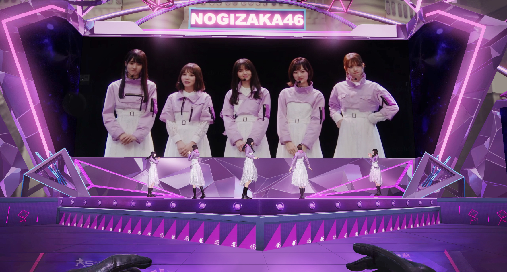 ライブに出演したのは齋藤飛鳥、松村沙友理、山下美月、与田祐希、賀喜遥香をはじめとした19人の選抜メンバーたち。オーディエンスがリアルタイムで入力する無数のコメントが弾幕のように飛び交うステージには彼女たちが歌い踊る映像が大きく映し出され、さらにその映像の前では齋藤、松村、山下、与田、賀喜をイメージした3DCGアバターが実写映像と寸分違わぬダンスを披露するという、まさに現実と非現実の間、拡張現実的な世界が繰り広げられた。