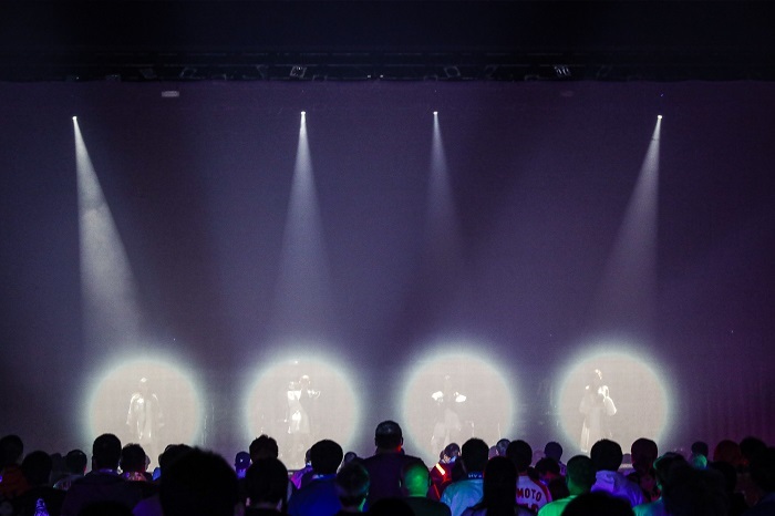 メンバー4人の息の合ったクールなシンクロダンスから「こだま」を披露。続く「BURNING FESTIVAL」、「ROSE FIGHTERS」ではメンバーがステージ上を縦横無尽に動き回り、底抜けに明るいパフォーマンスを披露した。