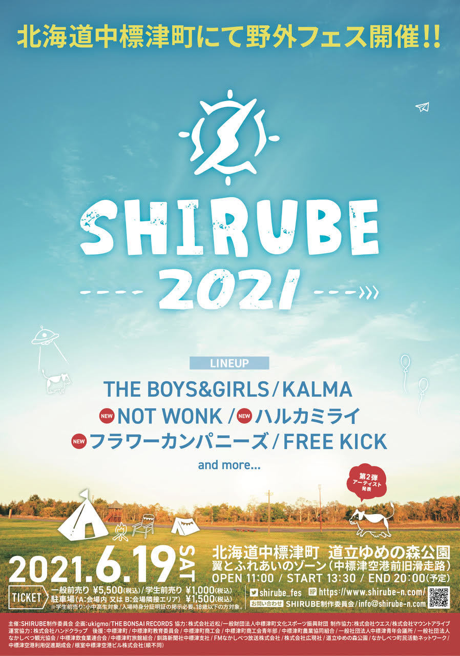 THE BOYS&GIRLSが来年2021年6月19日(土)に北海道・中標津町にて開催する野外フェス『SHIRUBE 2021』の、第2弾出演者が発表された。