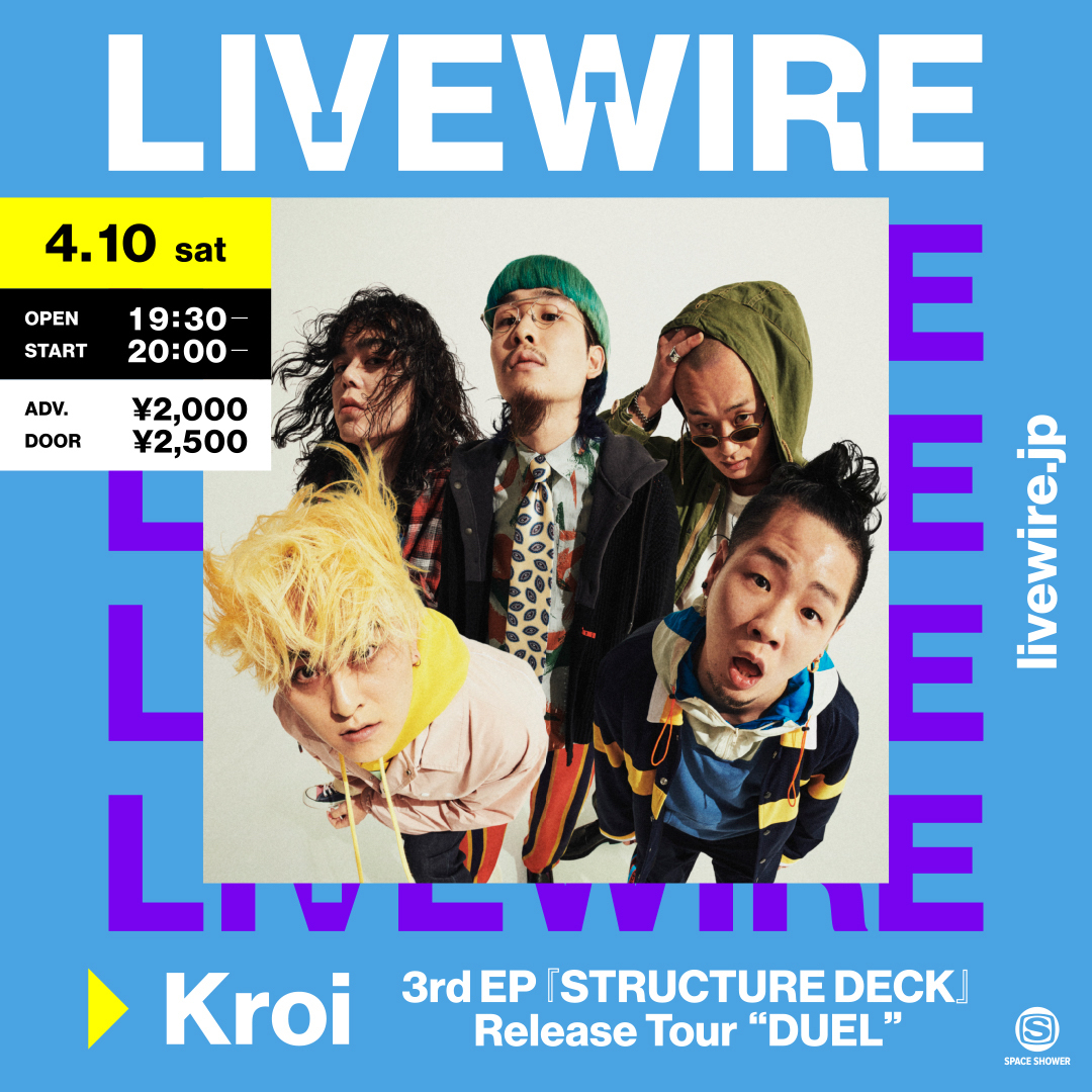 すでにチケットソールドアウトとなっている渋谷WWWXにて開催する、Kroiの『3rd EP 『STRUCTURE DECK』Release Tour "DUEL”』追加公演をスペースシャワーネットワークによるライブ配信サービス「LIVEWIRE」にて配信することが決定した。