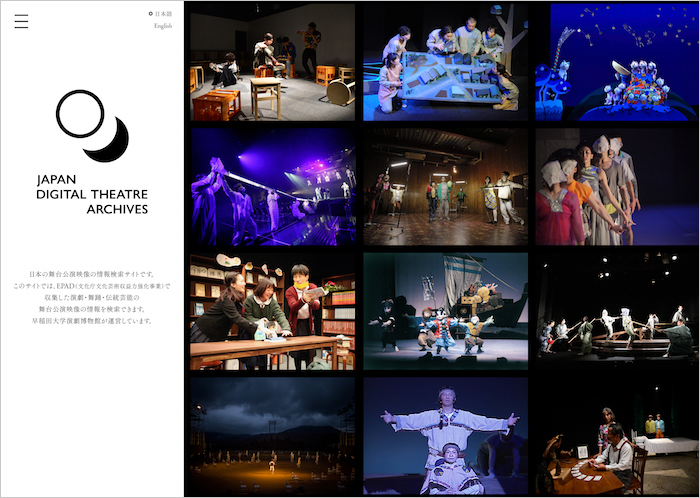 これらの貴重な映像は早稲田大学演劇博物館制作の情報検索サイト『Japan Digital Theatre Archives』によって検索でき、配信用の権利処理が済んでいる作品は3分の映像を見ることができる。また演劇博物館に行けば全編を見ることができる(要予約制、準備中)。それらの鑑賞機会を通して、次代のクリエイターたちを刺激し、将来に向けて舞台芸術の魅力を伝えていくことにつなげていくという狙いがある。