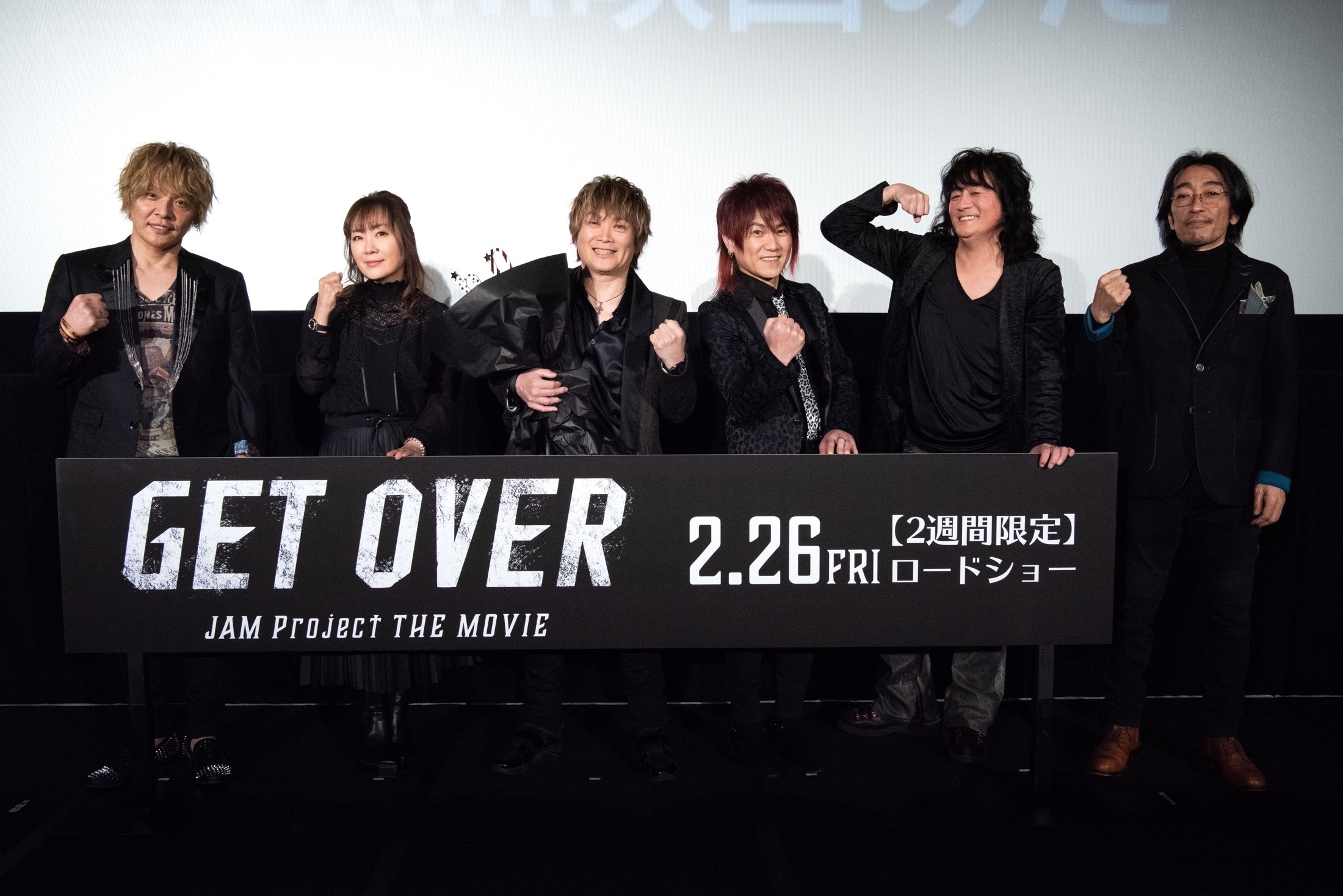 結成20周年を記念して、グループ初のドキュメンタリー映画『GET OVER -JAM Project THE MOVIE-』が、2月26日(金)からの2週間限定で公開されるJAM Project。2月23日(祝・火)に、JAM Projectの5人が登壇した『GET OVER -JAM Project THE MOVIE-』舞台挨拶付きプレミア上映会が都内劇場にて開催された。MCにアニメ、アニソンに造詣の深い吉田尚記(ニッポン放送アナウンサー)を迎え、結成20年のJAM Projectにこれまでの歩みについてメンバーに聞いたほか、同作の監督を務めた大澤嘉工監督も駆け付け2月18日に60歳の誕生日を迎えた影山のサプライズバースデーの祝いも実施。