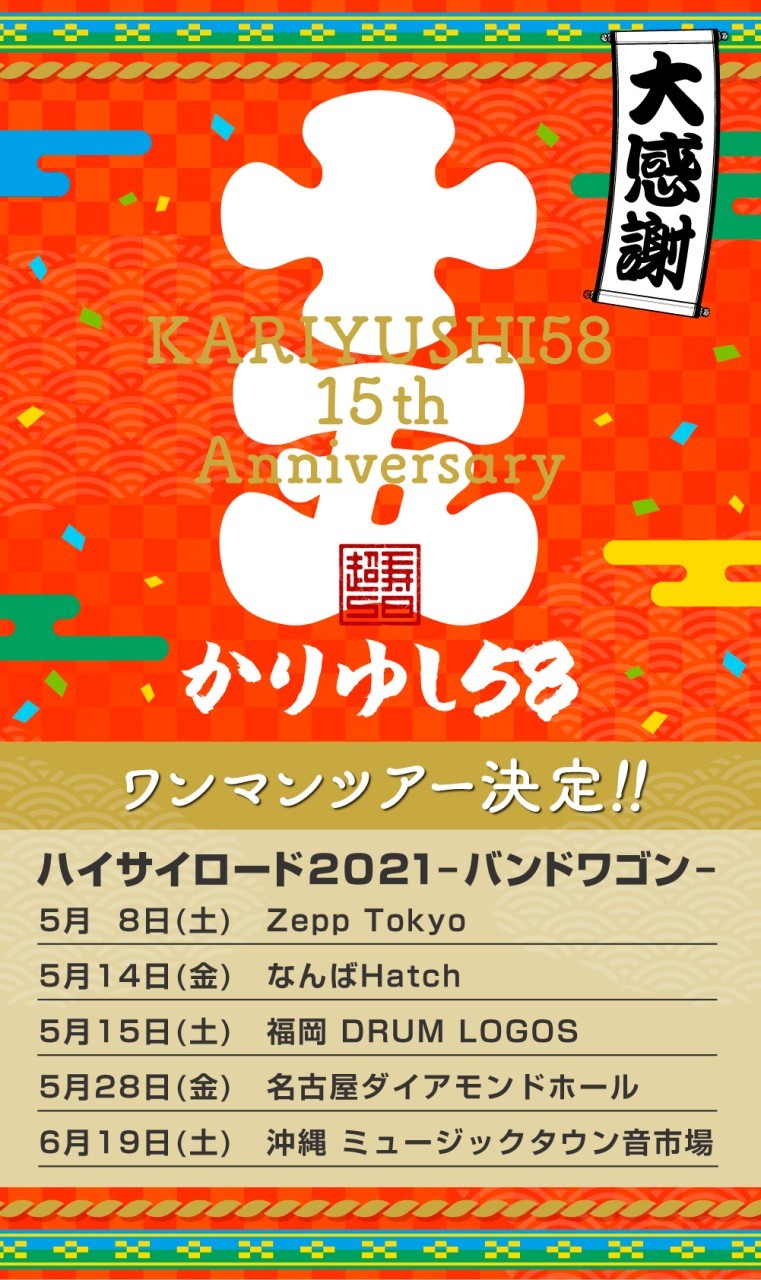 2月22日でデビュー15周年を迎えたかりゆし58が、記念日に行ったYouTube生配信企画にて全国ツアー『ハイサイロード2021-バンドワゴン-』を行うことを発表した。