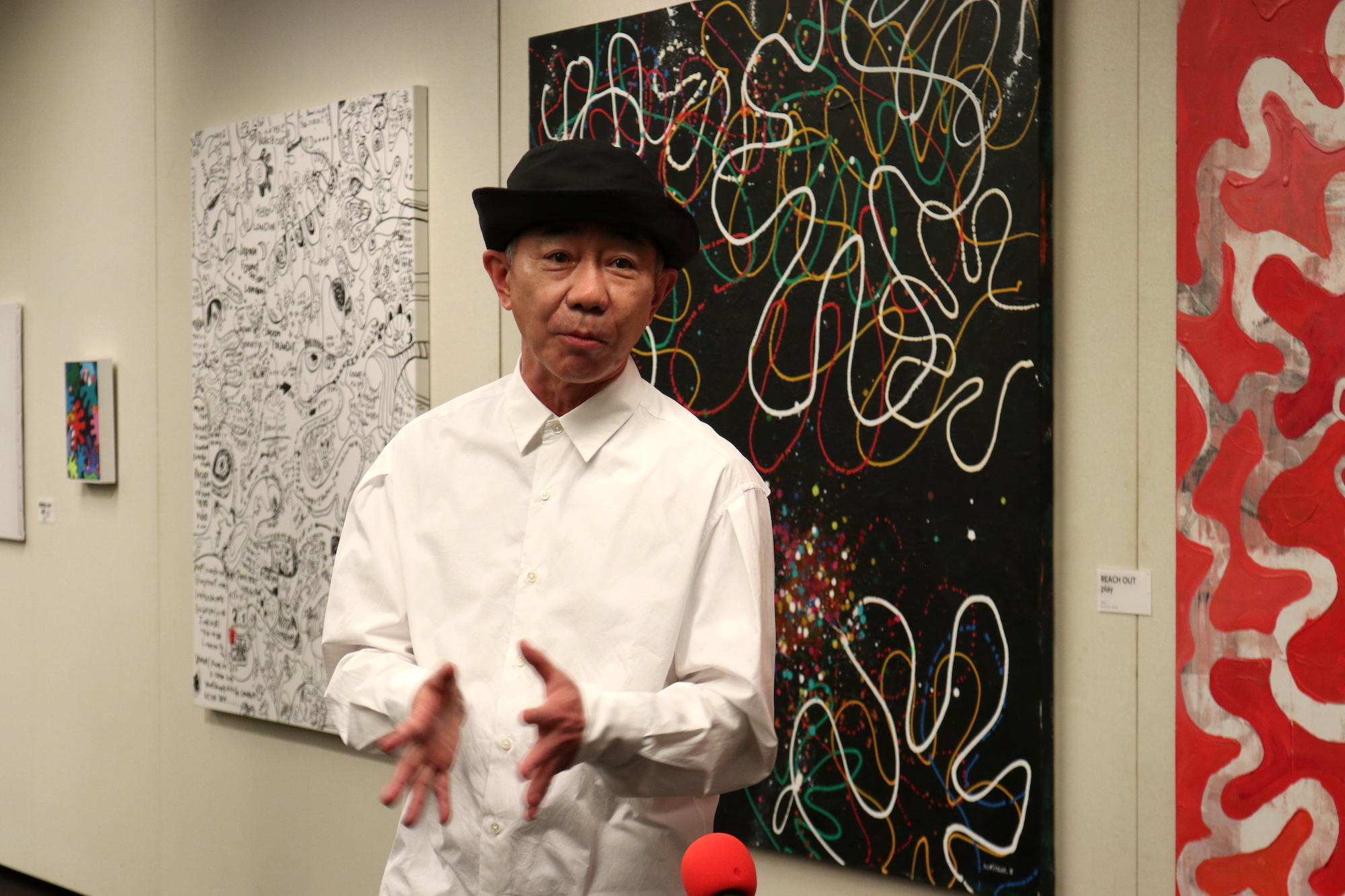 富山会場での開催時にはガラスアーティストたちと話し合って作品をつくったという木梨。「そのときの「ガラスのREACH OUT」も今回、飾っています。そうやって団体の力がどんどん広がってできあがった作品が、このフロアにあります」と周りを見わたし、最後に「明るくなれる作品ばかり。何かを感じてほしい」とPRした。